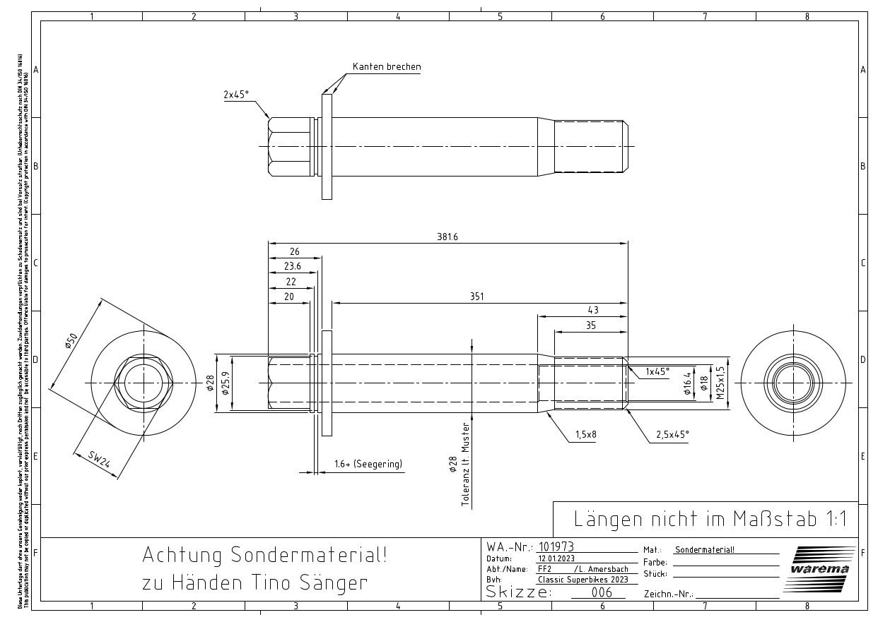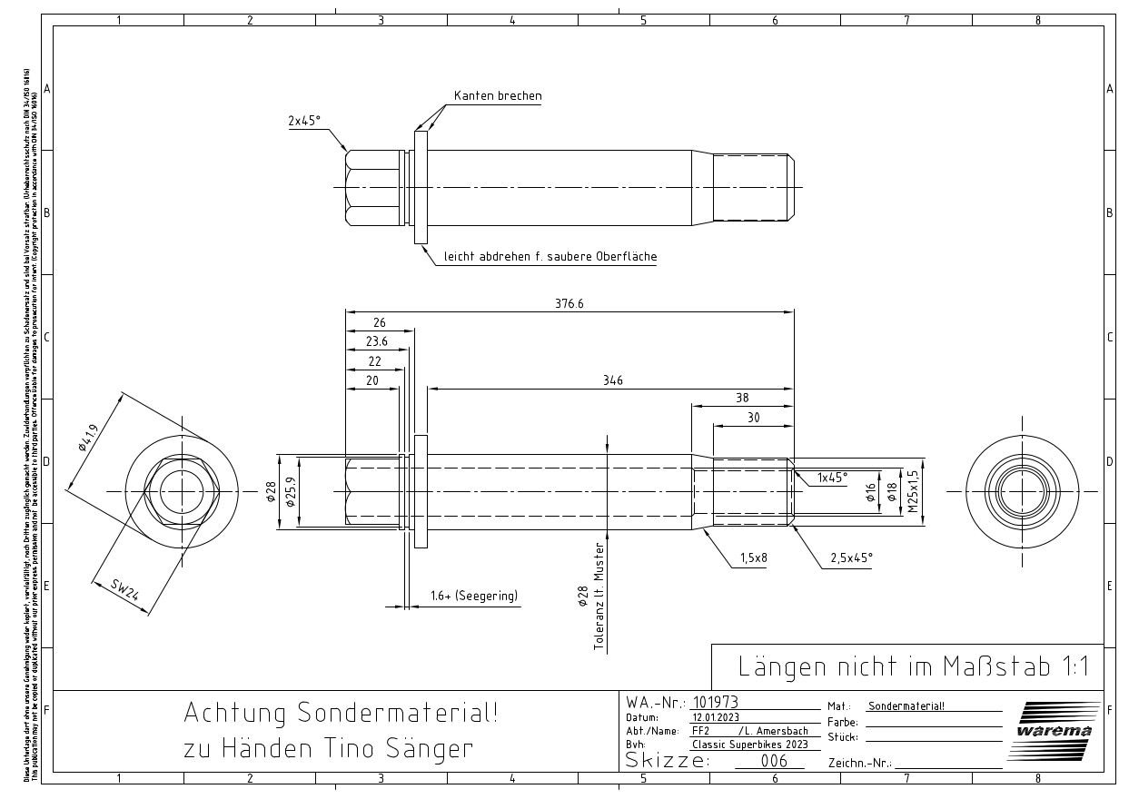 -> Hierfür drehe ich mir noch neue Lenkerstummel mit 310mm Länge