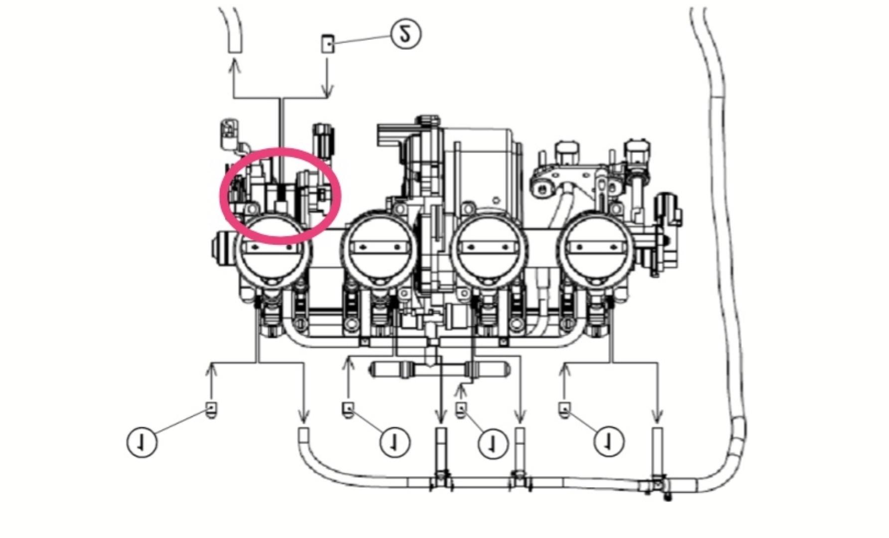 Ist es der dünne Gummischlauch, der sich oben recht am Drosselklappengehäuse befindet? (wenn man von oben und Fahrtrichtung draufguckt). Finde, die angezeigte Position passt irgendwie nicht ganz. Finde an der Stelle kein Anschluss.