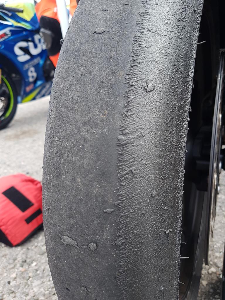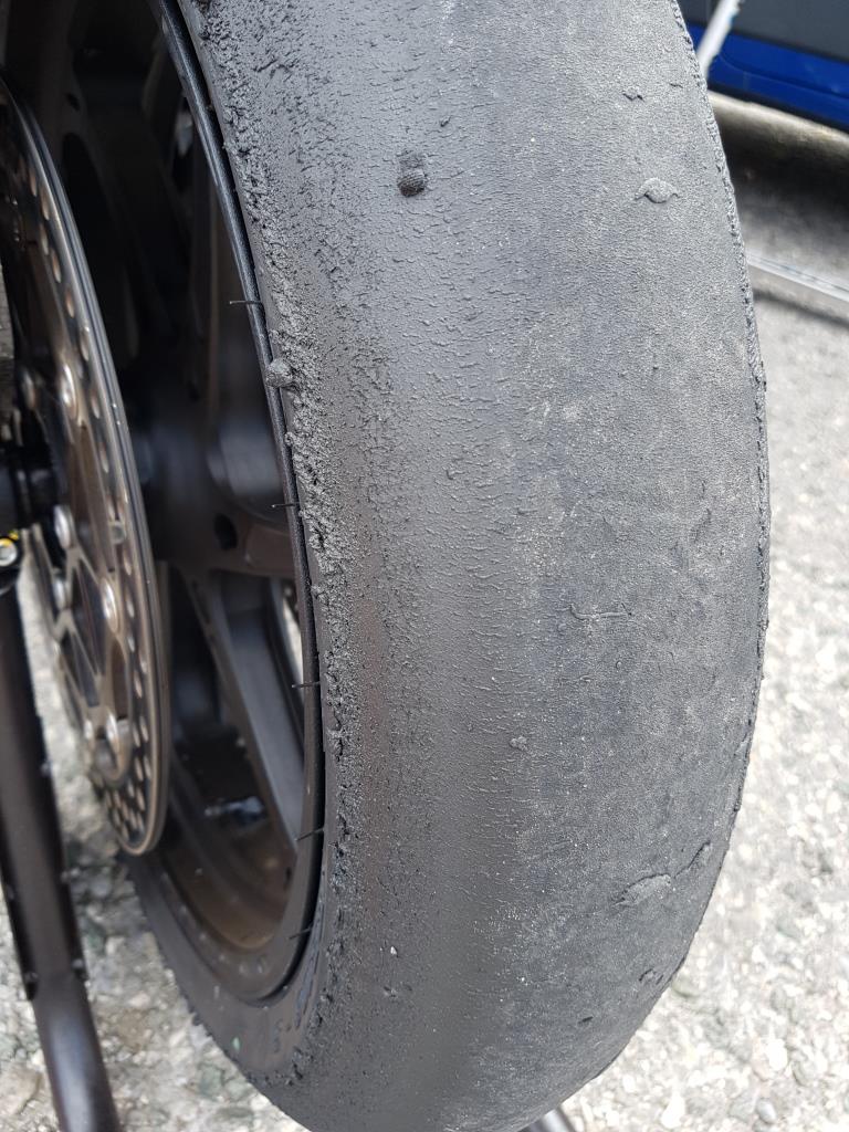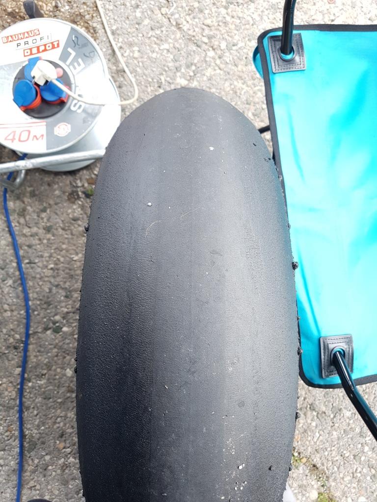 Andere Reifenmarke auf SRAD z.B. Pirelli Superbike mit gleichen Fahrwerkseinstellungen ergab dann wieder ein Top Reifenbild.