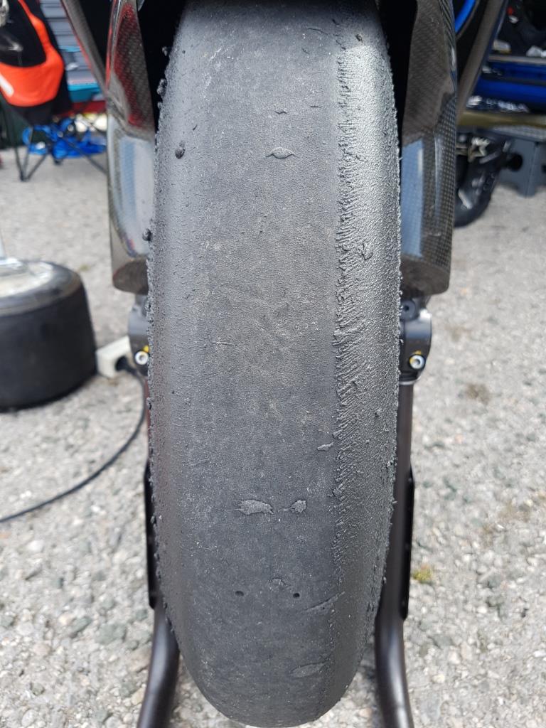 Anzumerken ist dass der Vorderreifen erst die letzten Runden ein derartiges Bild gemacht hat, vorher ähnlich gut wie der 2er hinten- hier würde ich das nä. mal eine 4er Mischung probieren. Hinten der 2er bei den Temperaturen eig. perfekt funktioniert- soweit ich das beurteilen kann zumindest.