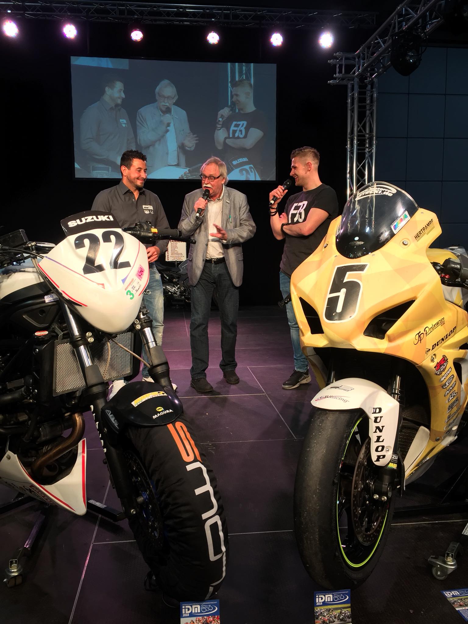Sehr schön empfand ich, dass nicht nur der GSXR Cup Werbung mit Bühnenauftritten gemacht hat, sondern auch die Langstreckenszene vertreten war. Da wurde Bradley Smith am Sonntag fast zur Nebensache, als Gert56, die Grebis und Jan Ole Jähnig auf die Bühne kamen