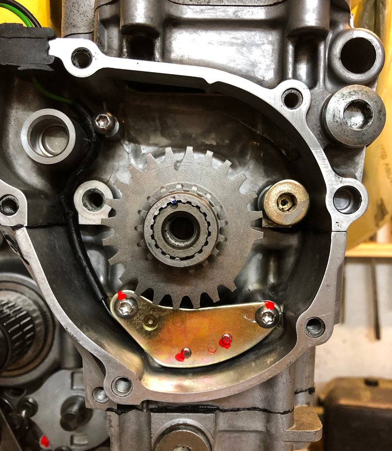 Bei der Gelegenheit wird dann auch noch fein säuberlich mittels Fühlerlehre der Abstand zwischen Triggerrad und Sensor eingestellt. Darf nicht zu klein sein und darf auch nicht zu groß sein, sonst gibts kein Signal mehr. Glaubt man kaum wie das schon bei den Serienmotoren schwankt.