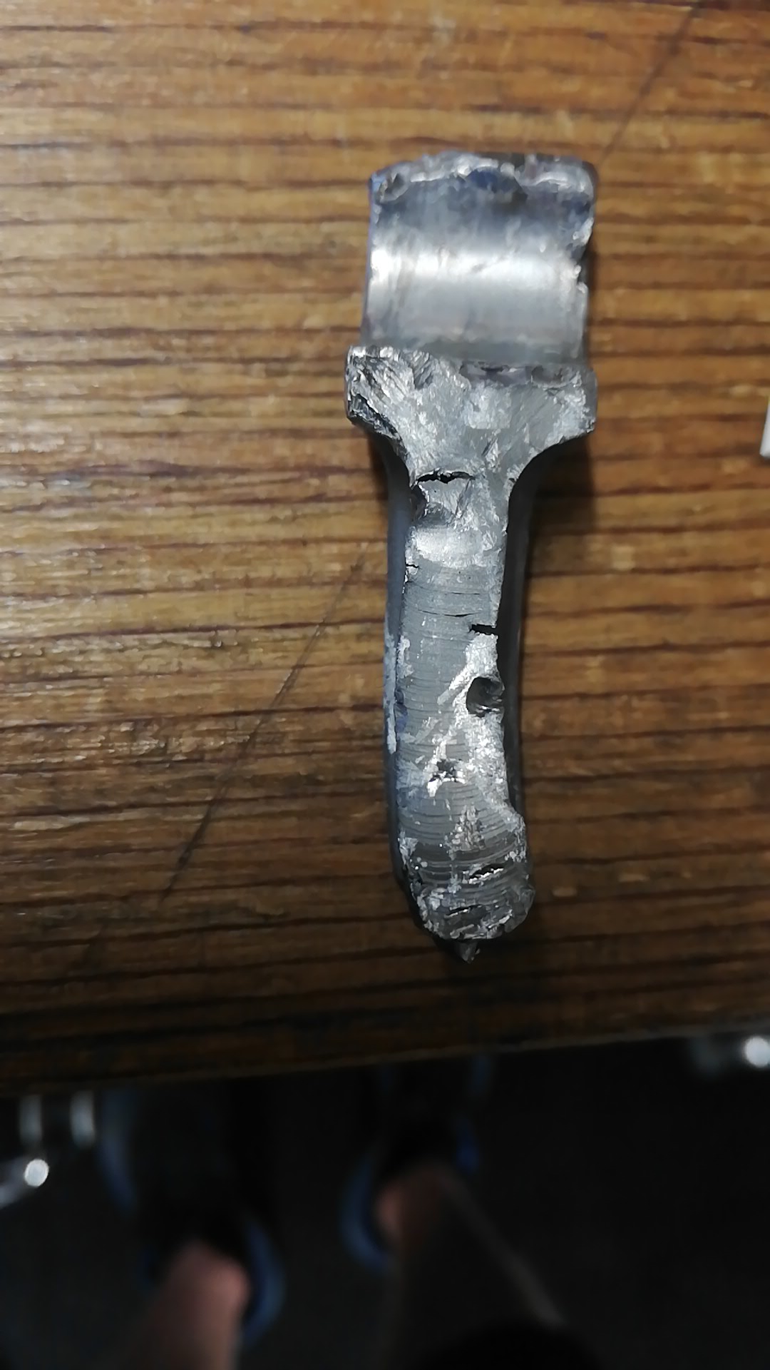 Ich sage das hat definitiv was mit der fehlenden Buchse zu tun. Es ist ja bekannt, dass Titan ein schlechter Reibpartner ist und auch extrem anfällig ist für Kerbbrüche. In diesem Schadensfall hat sich das Pleuel kurz mit Bolzen verschweißt und wieder losgerissen.