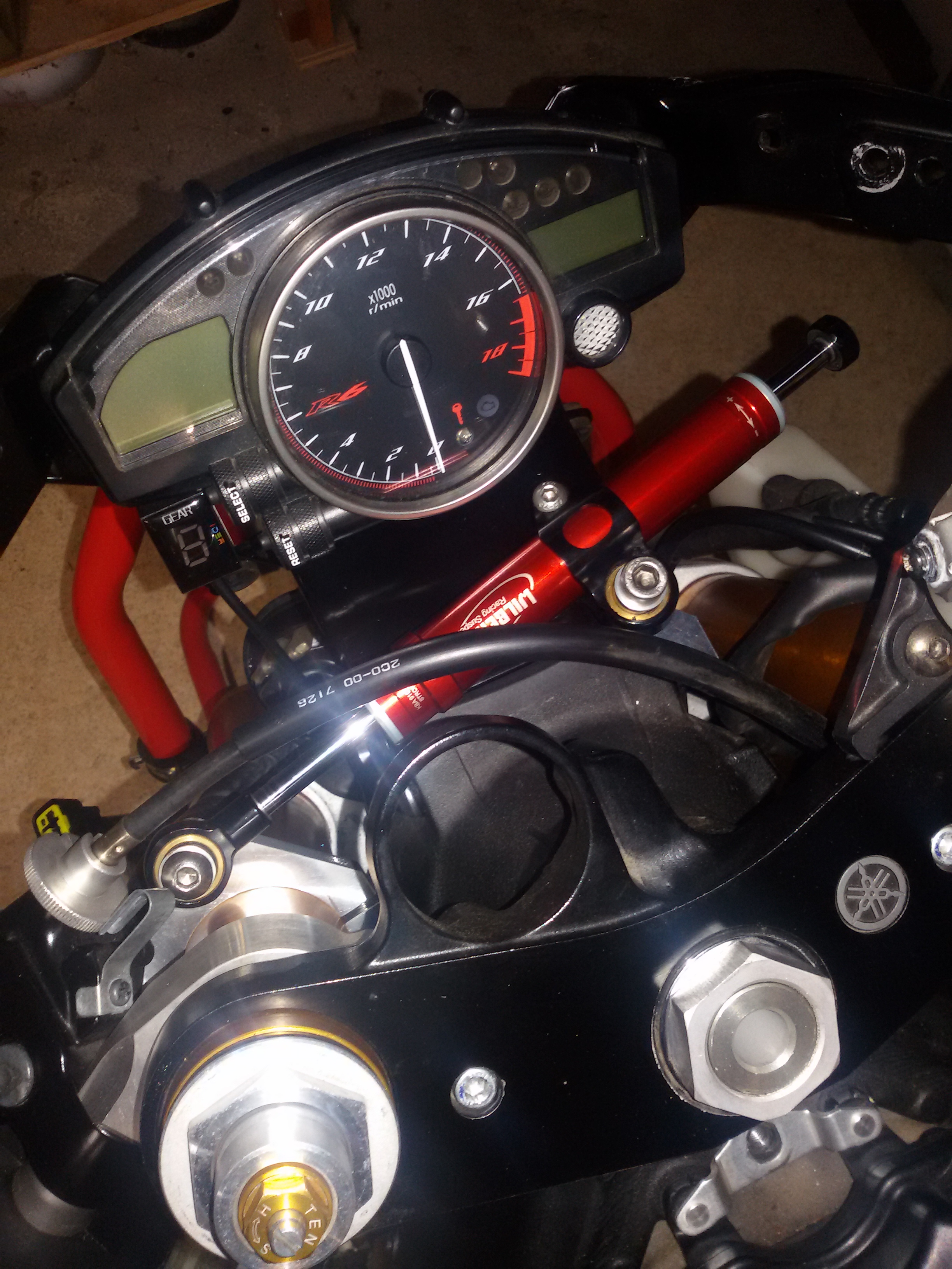 Lenkungsdämpfer habe ich nun vorne vor die Gabelbrücke gemacht.
