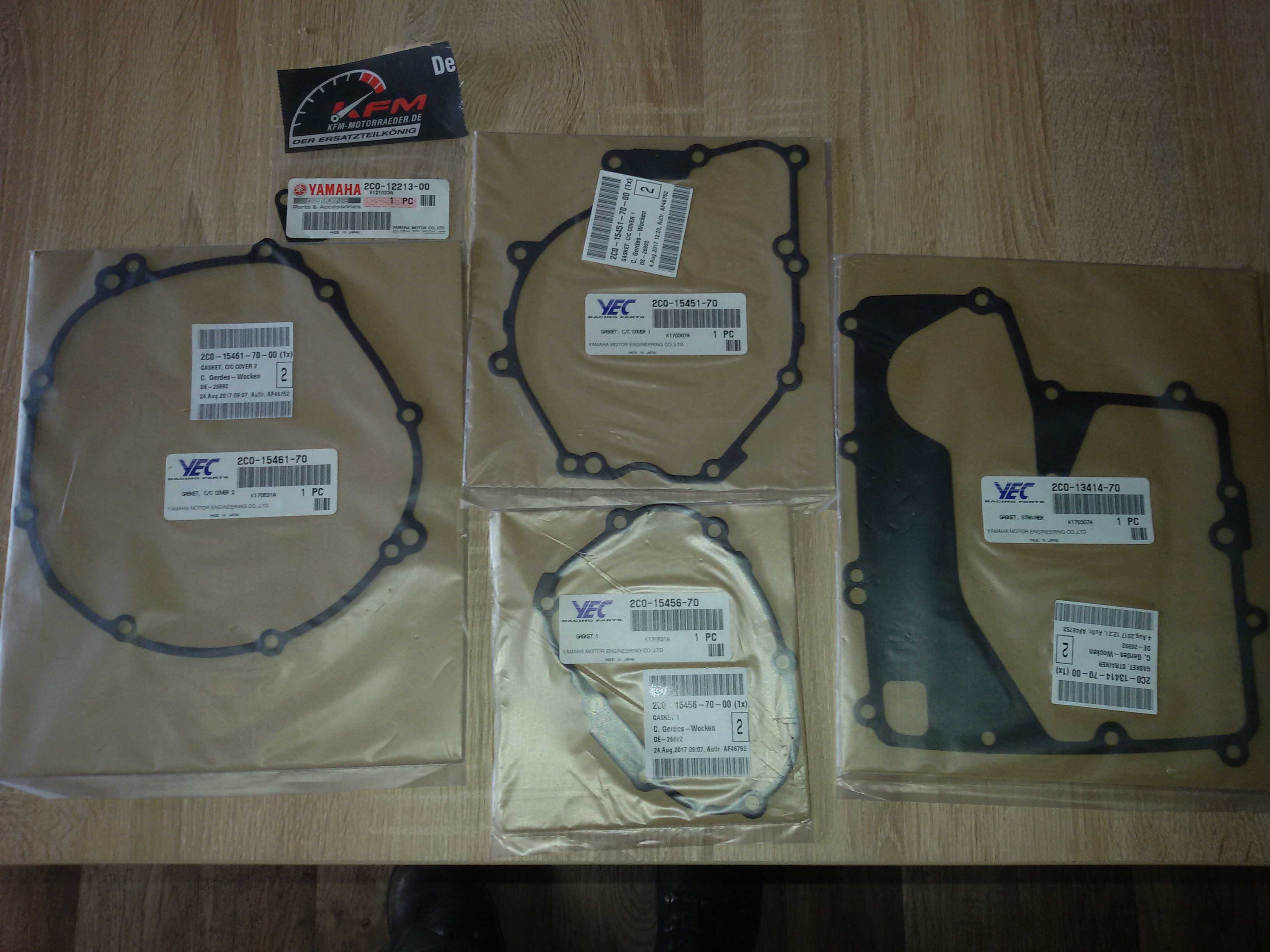 Vorhin ne Mail bekommen, bisauf die Kupplungsdeckeldichtung und die Ölwannen Dichtung sind die anderen Kit Teile jetzt bei KFM eingetroffen.