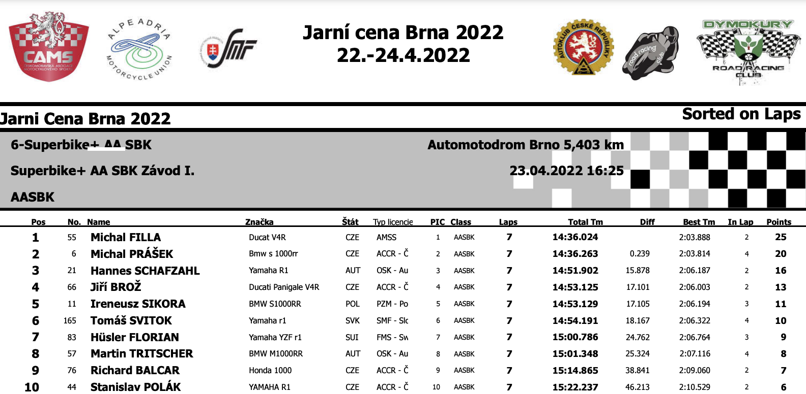 Zwecks Grip in Brünn...hier das Ergebnis vom letzten Alpe Adria Rennlauf in der SBK-Klasse Ende April
