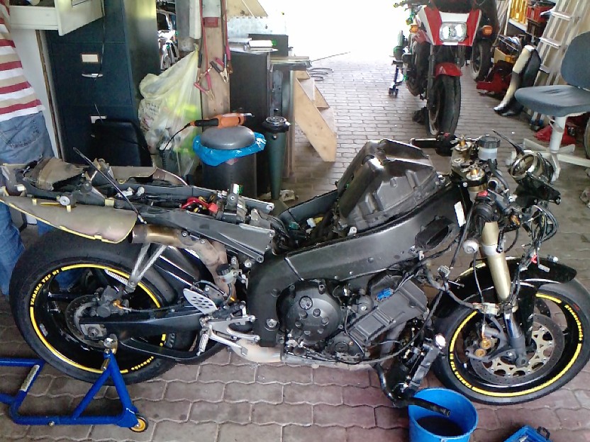 Vielleicht hätte ich der Yammi auch welche geben sollen... Deckels hab ich schon neu, Kühlwasserschlauch kommt, Verkleidung schick getapet, Schrauben hab ich ausgebohrt, aber Heck ist krumm :(