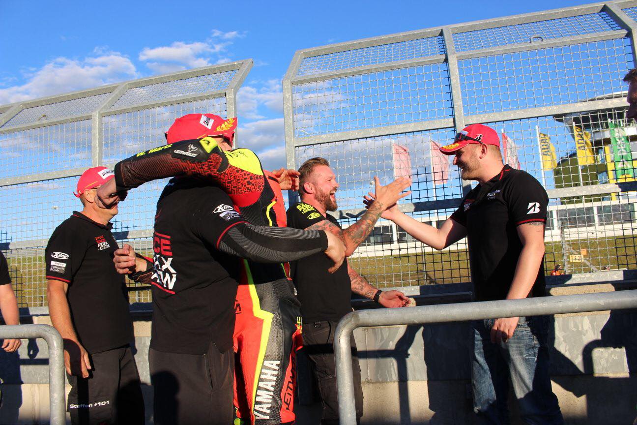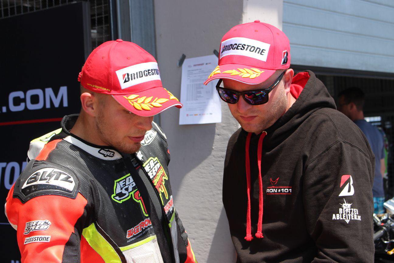 Zum ersten Mal dieses Jahr fuhr ich nicht den Start, sondern Danny. Mit dem neuen V02 VM vorn und den V02, beides in Soft, ging es also nach einer Verzögerung durch einen Sturz in der Warm Up Lap um ca. 10.35 Uhr los. Bereits nach Dannys erstem Turn lagen wir auf 2. Hesi, ich, Danny, alles top. Vorn dabei Team Race Now und AWR Racingteam, meine jungs mit denen ich 2016 auf der R6 gefahren bin. Bernd und Marc haben durch den GSXR Cup einen riesen Schritt gemacht in meinen Augen, sackschnell geworden der Opa und sein Bengel![]()