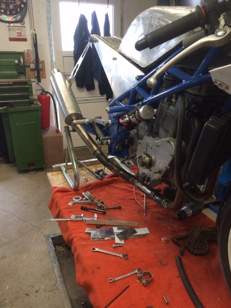 Test Kettenblatt ist angepasst ,Auspuffanlage sitzt auch soweit bis auf die Schellen ,morgen wird das Thermostat Gehäuse noch fertig gemacht wiegt die hälfte