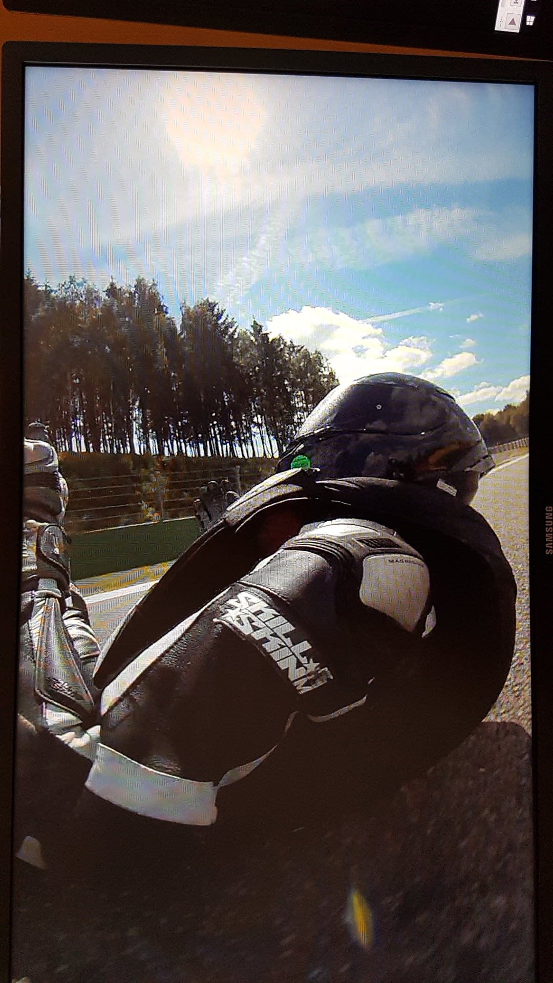 Tach zusammen! Ich kann mich nun leider auch mit einem Erfahrungsbericht der Helite GP Air hier anschließen: Ich hatte in Spa beim Kurvenausgang der Bruxelles bei ca. 100 km/h einen Highsider. Es hat schon ordentlich gerappelt! Auf dem Foto sieht man sehr schön, wie die Weste Brust und Rücken schützt und auch den Kopf stabilisiert.