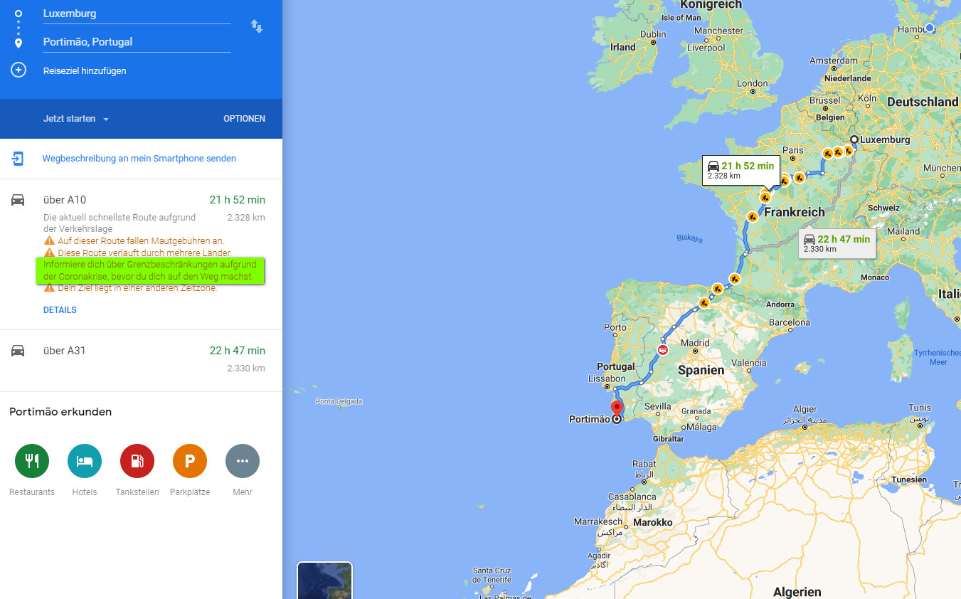 Ich reise ja vom gefährlichen Luxemburg ins gefährliche Spanien oder Portugal.