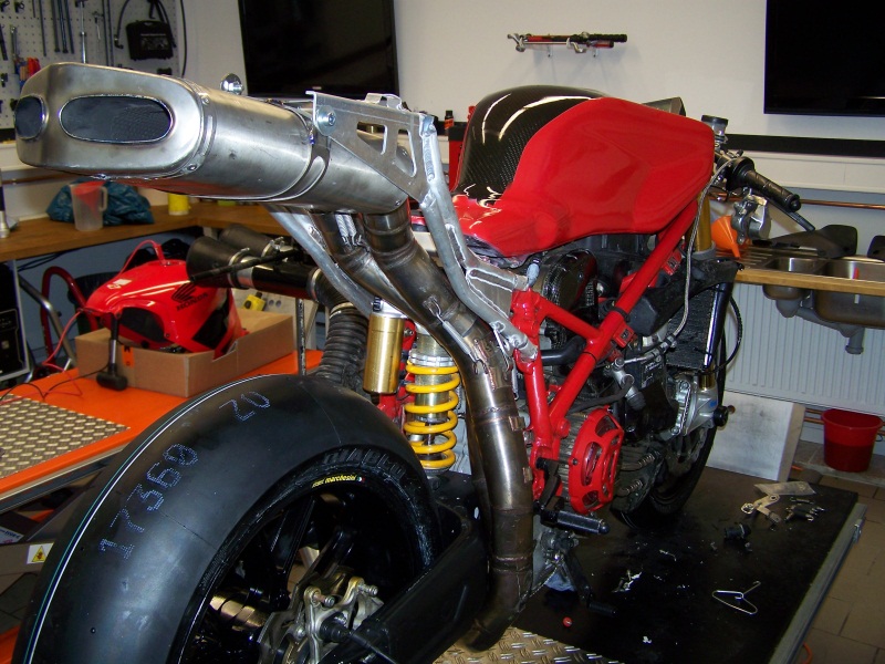 ... heute erstmal die Auspuffanlage mit passendem Rahmenheck angeschraubt...