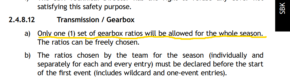 Ist es nicht so, dass in der WSBK die Getriebeabstufungen über das Jahr hinweg fest gesetzt sind?