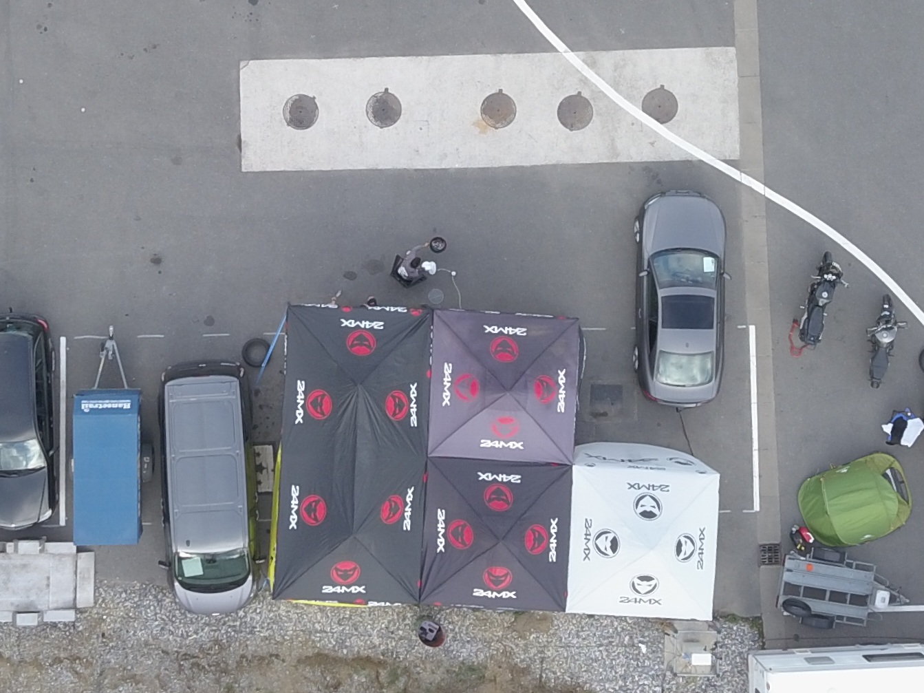 Ist halt irgendwie die Frage was man gewinnt, wenn ein 100€ Zelt zum Wurfgeschoss wird und bestenfalls nur in Autos und Mopeds reinhagelt. Sowas wie den Sturm hab ich in 11 Jahren so noch nicht erlebt und hat mir echt zu denken gegeben. Das kleinere 24MX Zelt nehm ich nur noch mit, wenn ich keinen Sturm erwarte. Sonst schlepp ich lieber das Edelstahlgerüst rum.