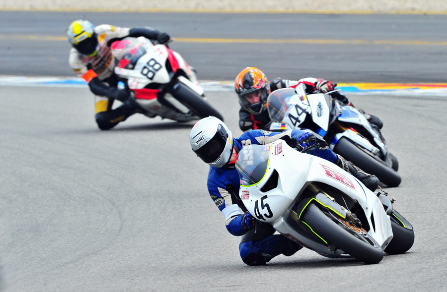 Snoopy hat die ersten Runden die versammelte BMW HP4-Armada auf einer serienmäßigen, alten ZX-10R eingetütet - gefällt mir!