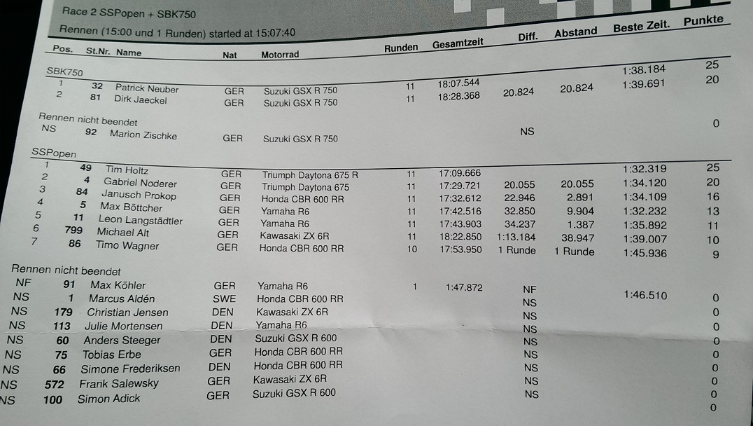 Allerdings kam ich nach der Auslaufrunde herein und die Rennleitung teilte mir mit, das ich einen Frühstart hatte...20sek Strafe...platz 4. :axed: