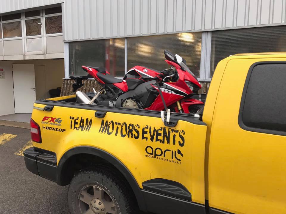 #50 Team April Motors Events hatte die erste 2017er CBR1000 Ende Januar bekommen. Gleich noch mit Originalverkleidung, Serienreifen bei 5° und Nässe auf dem Circuit Carole eingefahren.