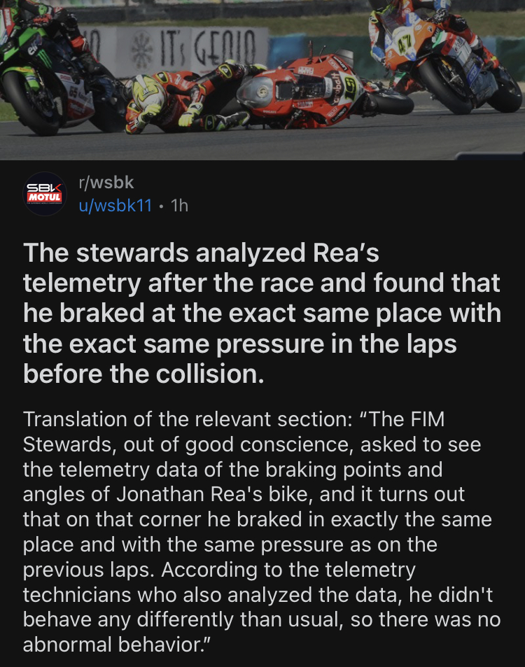 Der beste Beweis diese Absicht - Debatte nun zu beenden.Man sieht wohl eindeutig, wie sehr auf Messers Schneide dort gefahren wird. Wenige Zentimeter, wenn nicht Millimeter haben entschieden über Ausfall von Toprak aufgrund Fehler Bautistachili hat geschrieben:Bautista hat im Sprintrennen versucht mit dem Winglet Razgatlioglus Hinterreifen aufzuschlitzen![]()