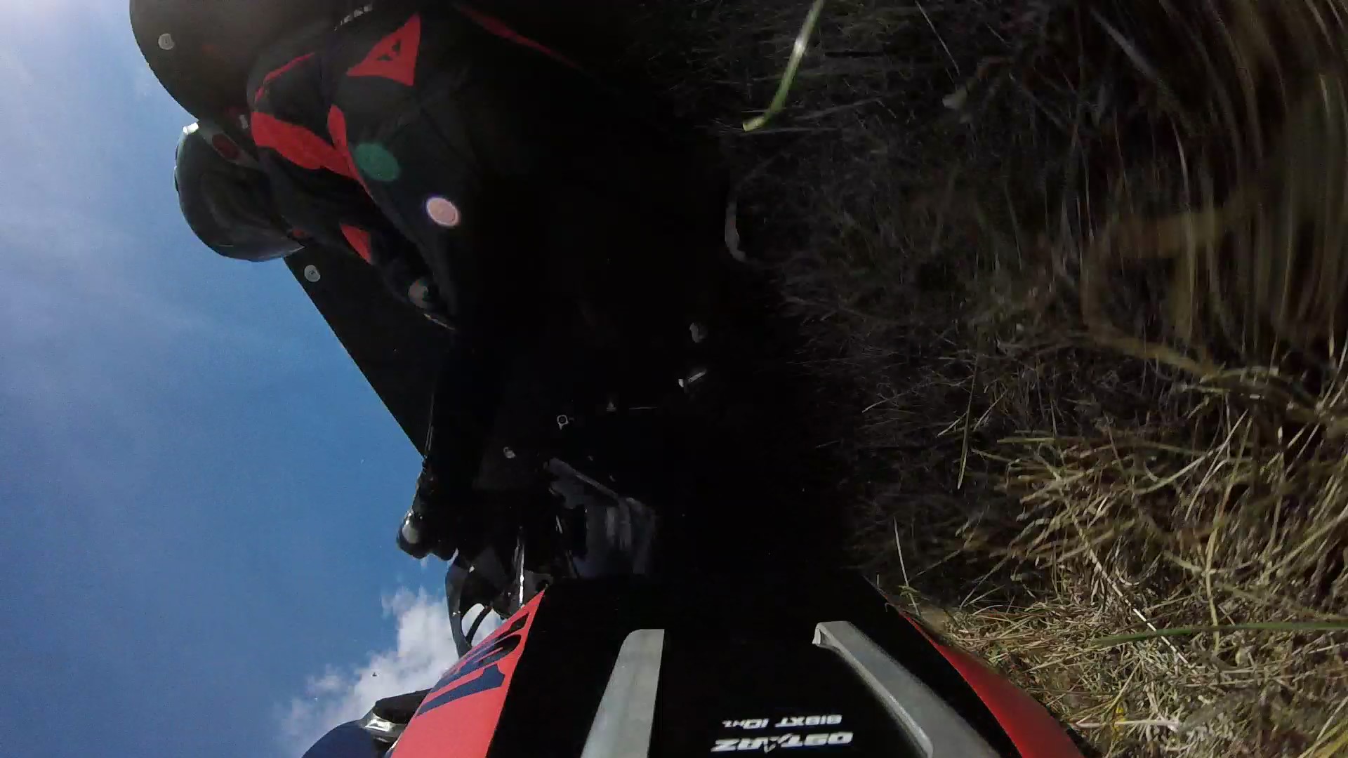 Mein Pech war nur, das die Auslaufzone an der Stelle sehr klein bemessen ist. Nach einem Ritt durchs Kiesbett ohne größere Probleme wirkte der Übergang zum Gras dann wie eine Sprungschanze und mich hat es mit rund 50 km/h laut gps in die nicht ganz Motorradfahrerfreundliche Reifenstapel-Gummiplatte-Konstruktion gewürgt, wie oben zu sehen.