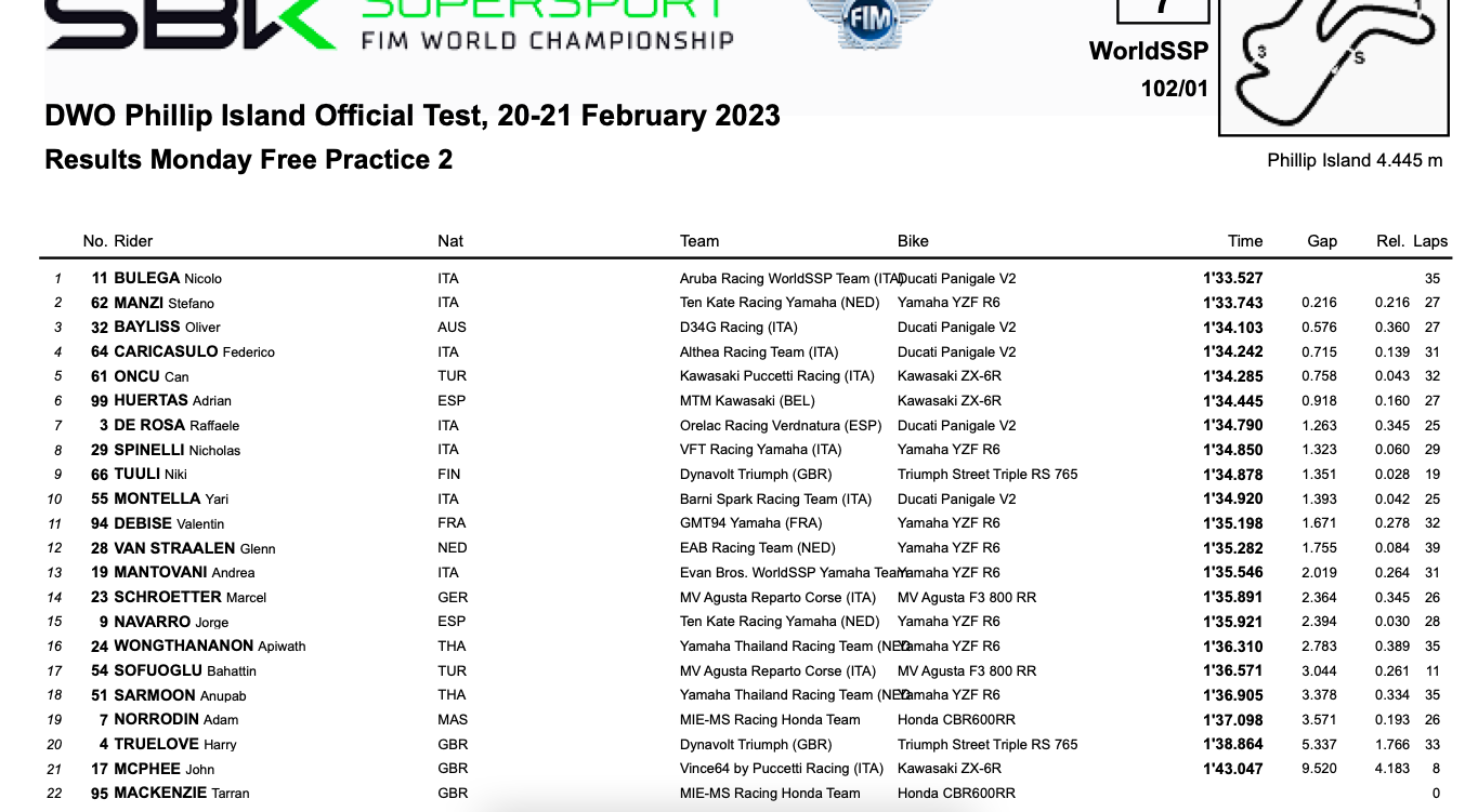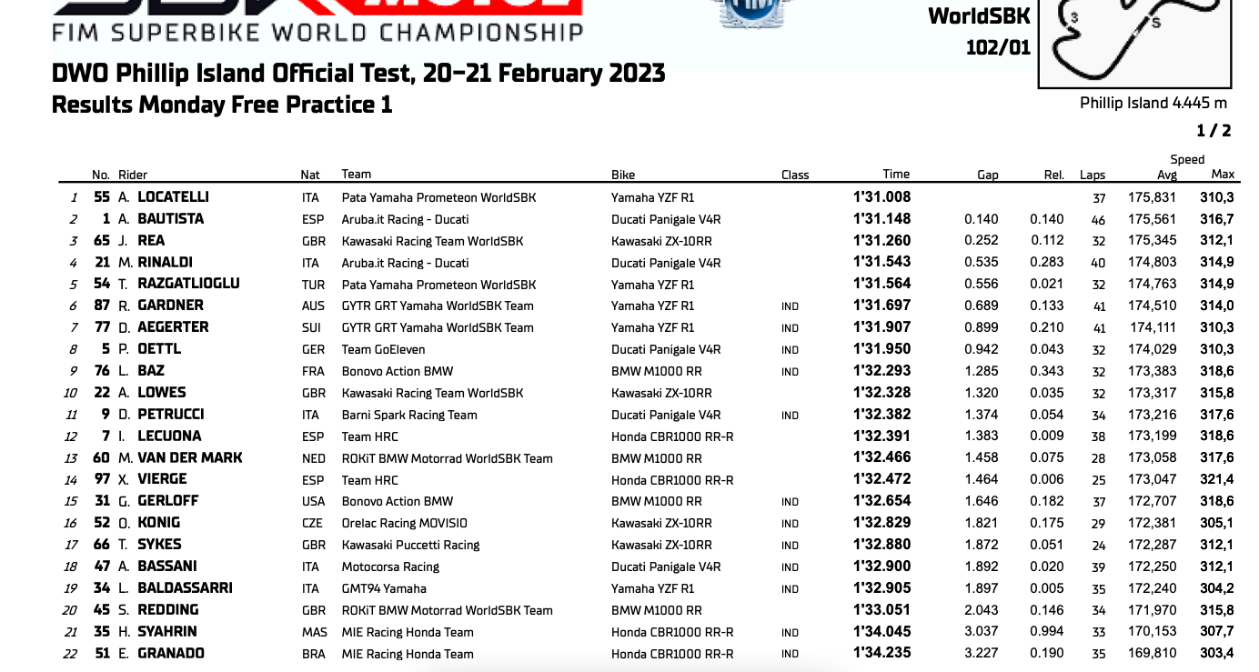 Das FP1 in Phillip Island ist heute schon gelaufen: