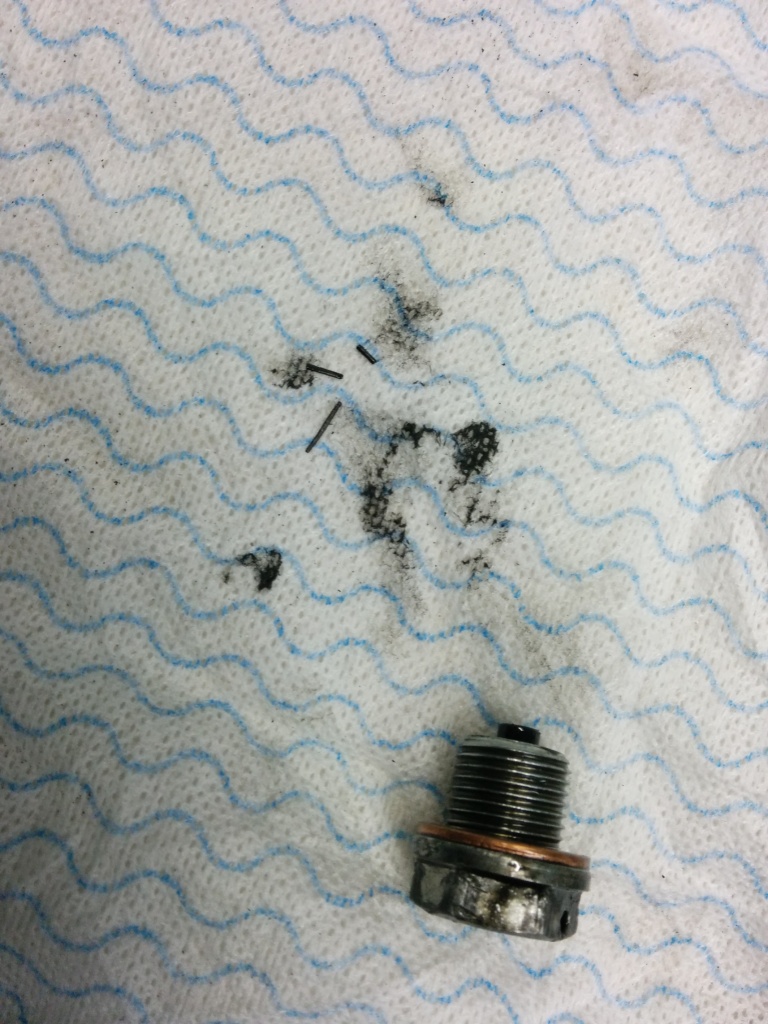 Ich hatte drei metallische Partikel an der Ölablassschraube, siehe Bild. Das längste ist ca. 1 cm lang und so dünn wie das Gewinde der Ölabschlassschraube, wobei sie schon sehr dünn sind. Wir denken es könnte von einem Nadellager stammen, das sind aber reine Vermutungen.