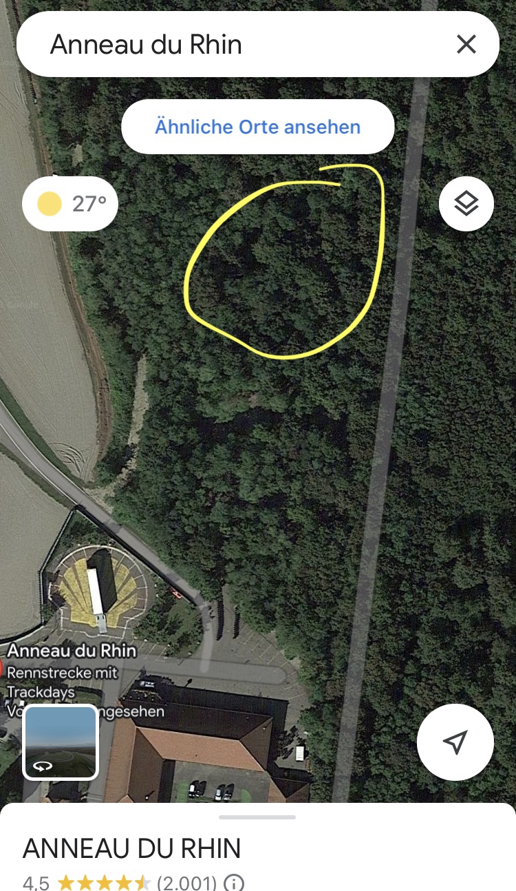 Im Fahrlager geht ja ein kleiner Bereich in den Wald rein (rechts an der Tankstelle).