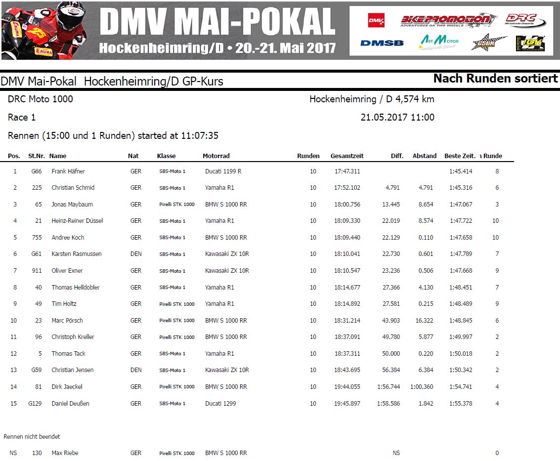 Bereits in den freien Trainings konnte ich ansprechende Rundenzeiten erzielen. Nur die gewählte Übersetzung von 16-44 erwies sich als zu kurz. Da aber die Schwinge zu kurz oder eben die Kette zu lang ist, konnte/wollte ich nicht wechseln und versuchte die R1 in der Parabolika so früh es geht auf zu richten.