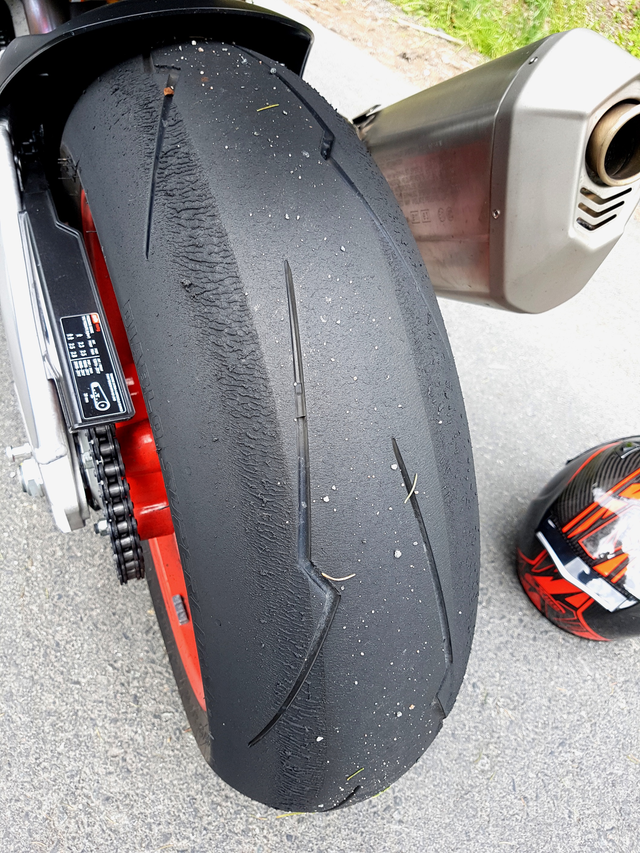 Die Gedanken mit den 35° hatte ich allerdings auch. Das sieht eher nach 15° und dann Vollgas aus. Weiß nicht ob man das vielleicht mit Einstellungen der TC verhindern kann das der Reifen so aussieht.
