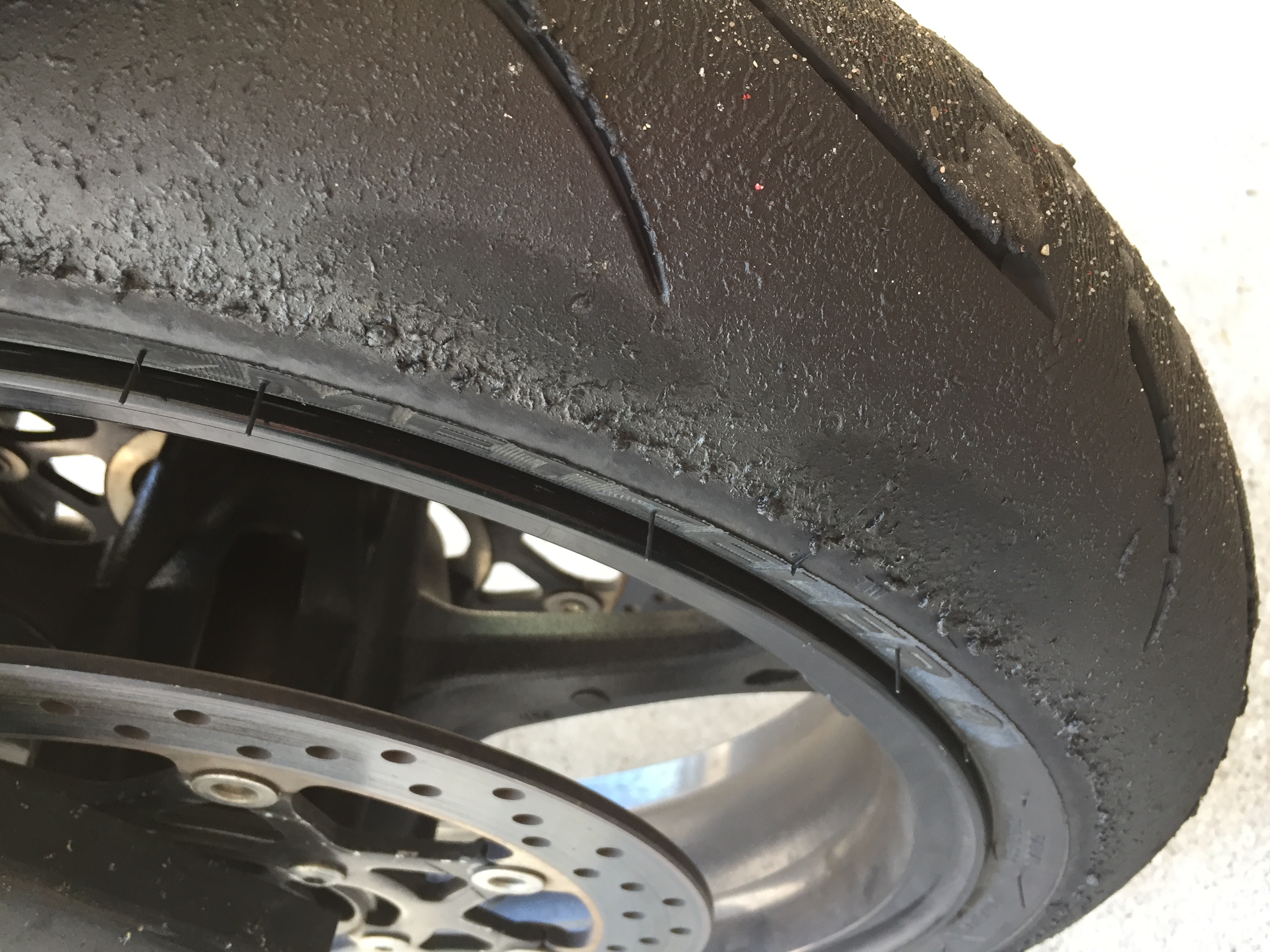 Moin Moin. Nach meinem letzten mettet Besuch, habe ich meines Erachtens nach ungewöhnliche Flecken auf den Flanken des vorderreifens. Als ich vorm 2.Turn den wärmer vom Reifen nahm, sah ich an einer Stelle schon eine komische Schicht. Bunt schimmernd, als sei es Öl. Langsam rangetastet in den rechtskurven. Kein Problem. Voll reingelangt, auch kein Problem. Jetzt ist mir aufgefallen, dass überall verteilt auf beiden Flanken Flecken sind. Reifenwärmer vorne kontrolliert. Nichts zu sehen... anbei mal ein Foto. Vielleicht kennt ihr das Problem, falls es eins ist. Danke im Voraus!