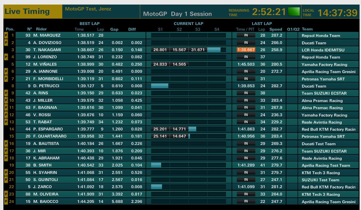 Ui, Lorenzo momentan auf Platz 1 mit einer 38,7