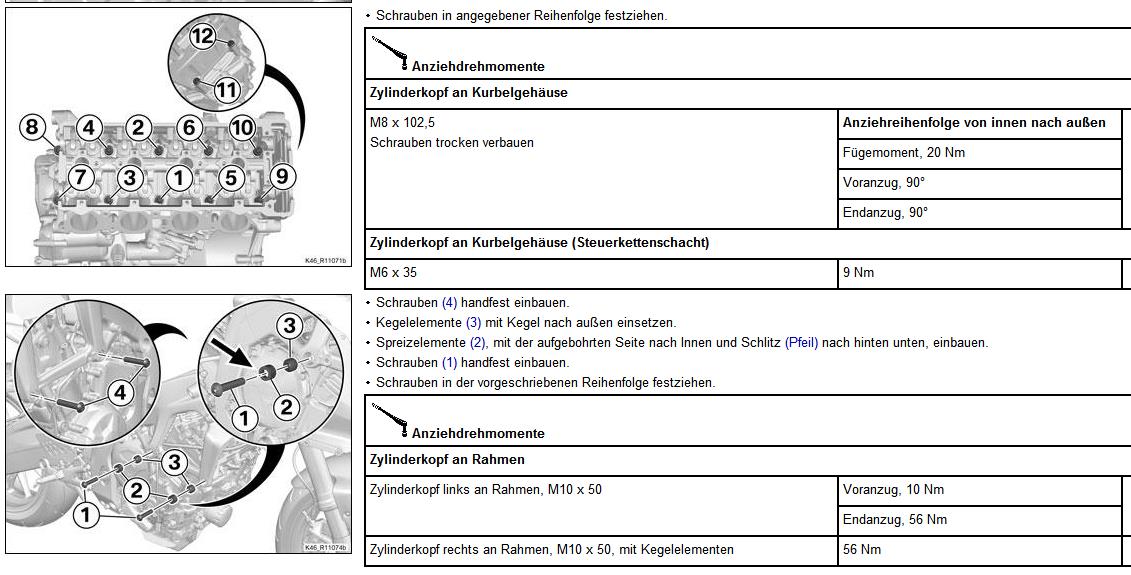 Hier bitte sehr Vorsichtig mit den Drehmomenten sein. Es wurden z.B. die Anzugsvorschrift der Kopfschrauben geändert....