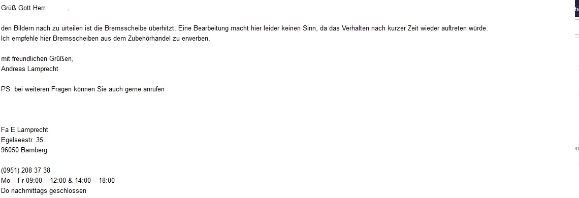 Leider ist die Vibration ab 180Kmh immernoch da. Ich werde die Scheiben jetzt planschleifen lassen.