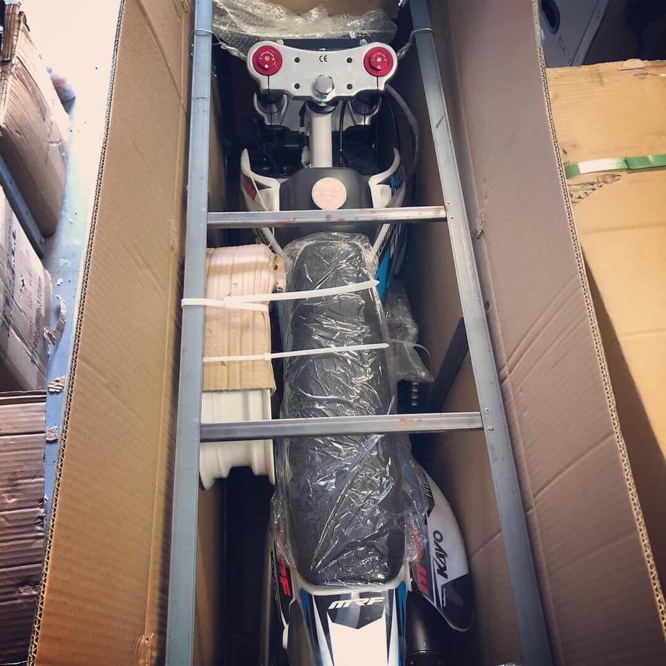 MRF 140 Supermoto wurde für den Rennsport geschaffen. Modifizierter Rahmen, Federung und Hinterradschwinge lassen es sehr gut auf der Kartbahn fahren. Das Bike kommt direkt mit Mitas-Reifen zu euch.