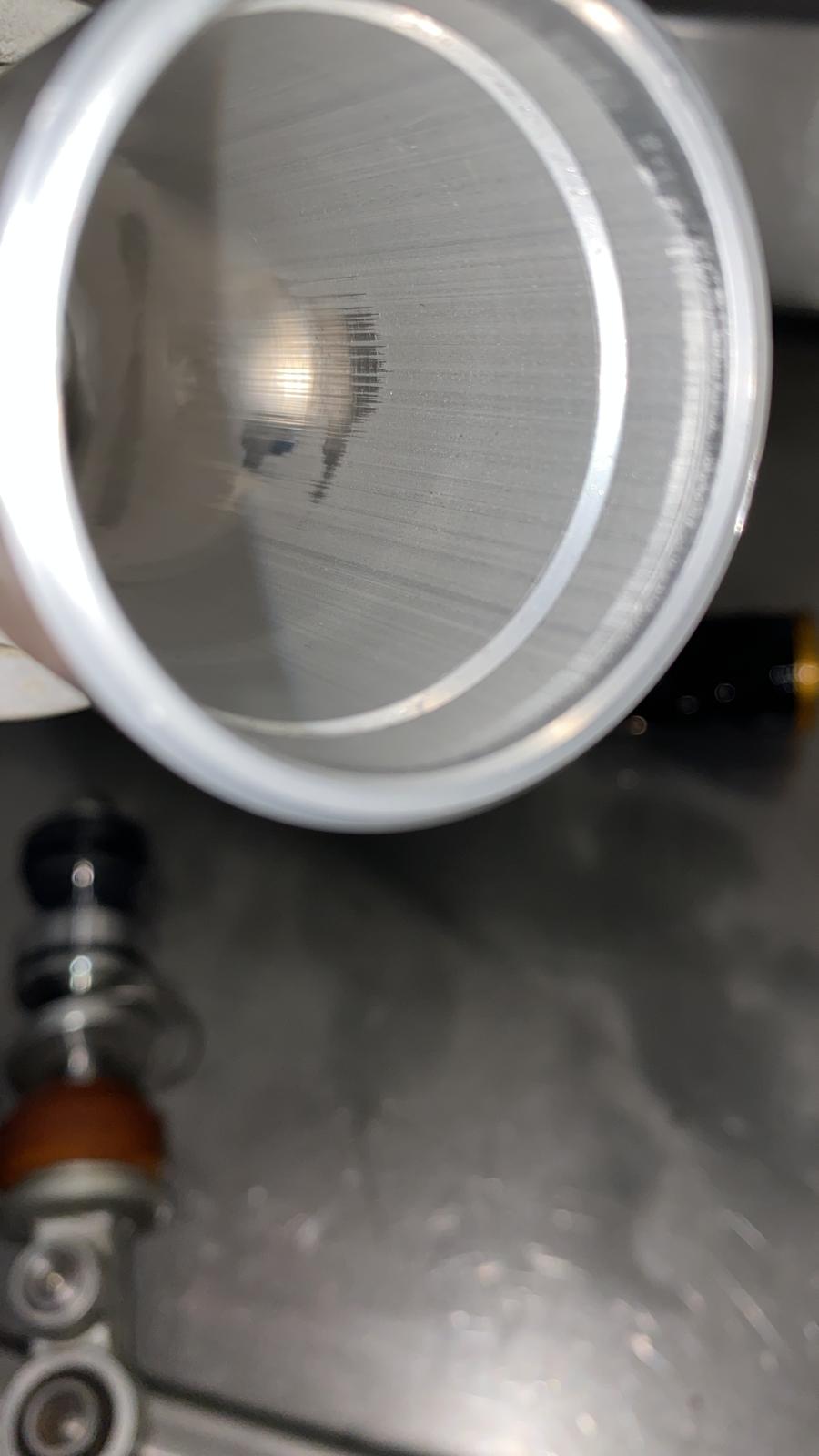 Wie die in Arbeitsrichtung des Kolbens laufenden Riefen oder Kratzer entstanden sind kann ich nur mutmaßen, aber auf einen Fertigungsfehler zu schließen finde ich etwas übereilt. (Nur meine Meinung)