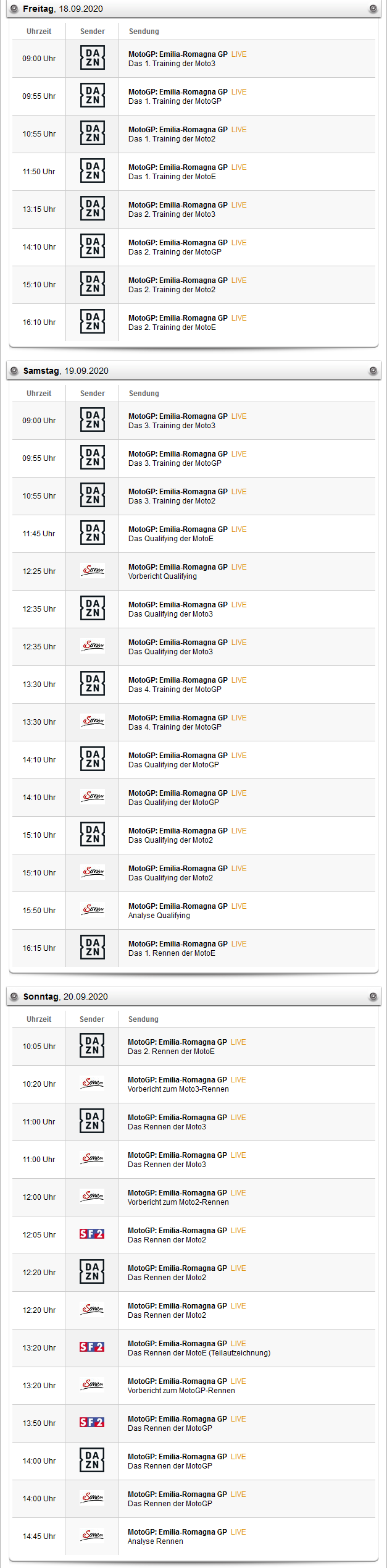 Re: Sendezeiten: Gran Premio TISSOT dell'Emilia Romagna e della Riviera di Rimini 18 Sep - 20 Sep