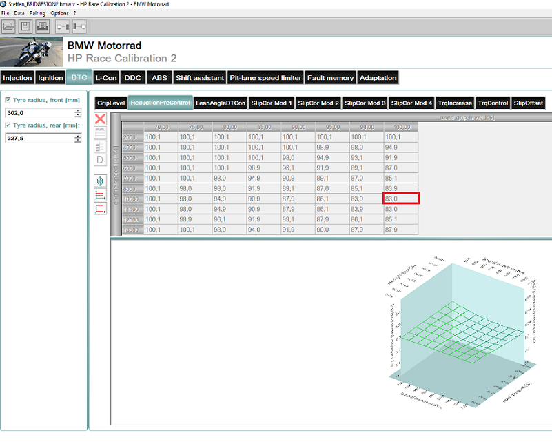 In der Tabelle wird also die Drehmomentreduktion in Abhängigkeit der Motordrehzahl und der Ausnutzung des Reibwerts "Grip Level" dargestellt.