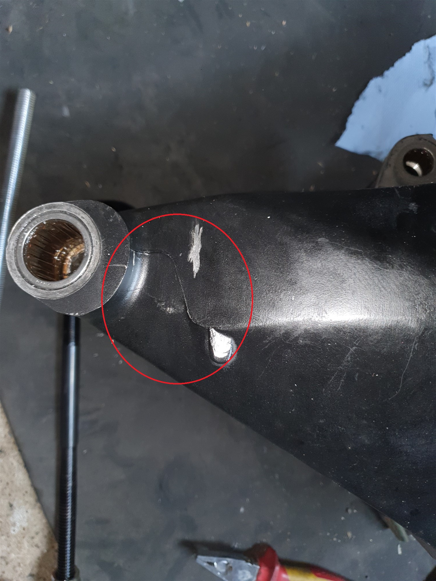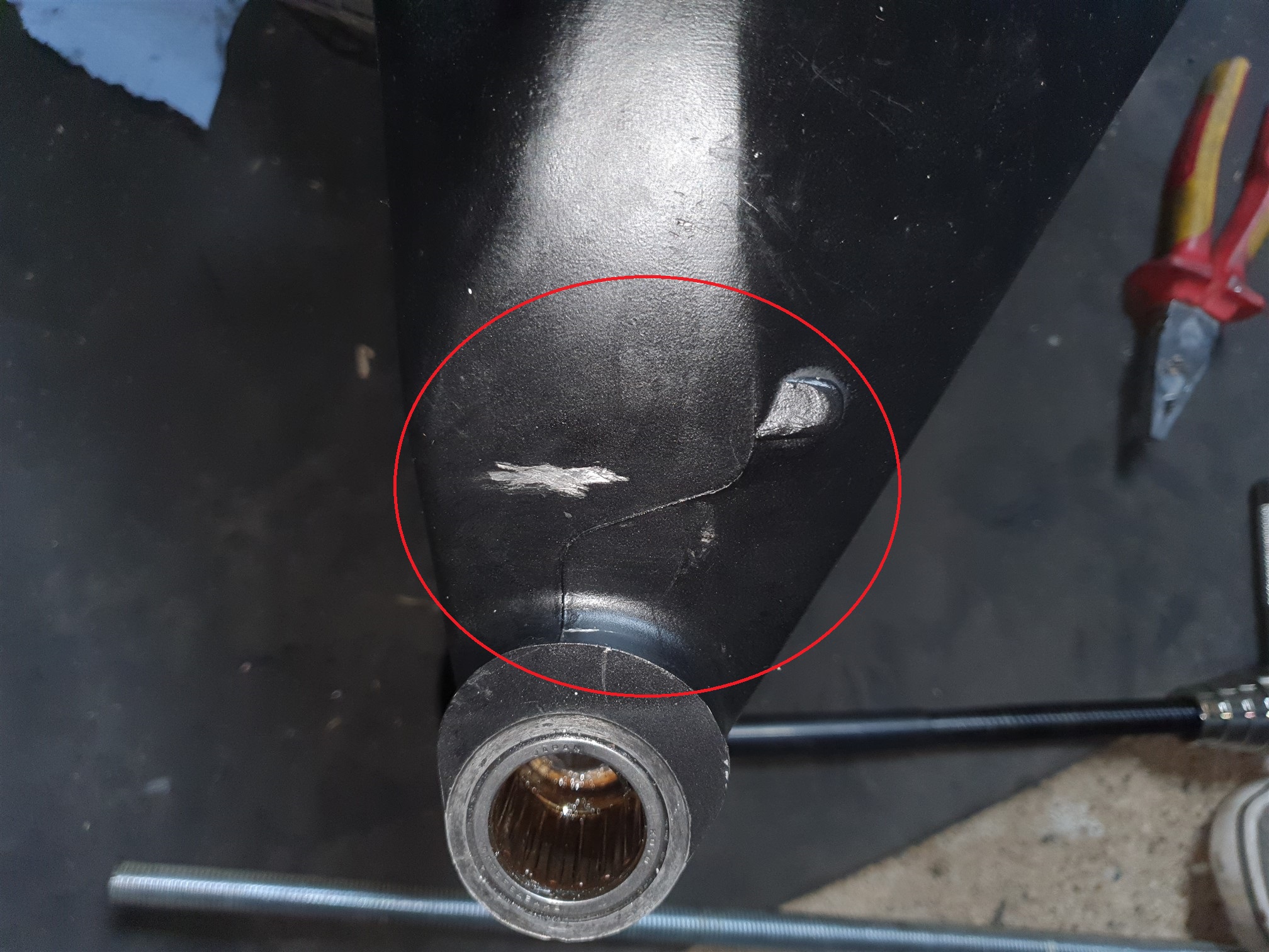 Vor dem Einpressen des zweiten Lagers die innere Distanzhülse (sofern vorhanden) in der Schwinge nicht vergessen, sonst darf man nochmal von vorne anfangen.