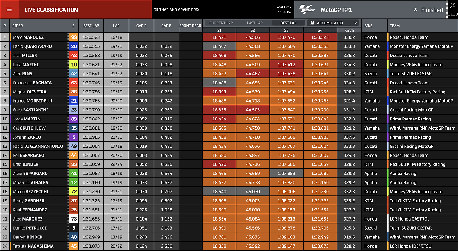 Sendezeiten OR Thailand Grand Prix 30 Sep - 02 Oct 2022