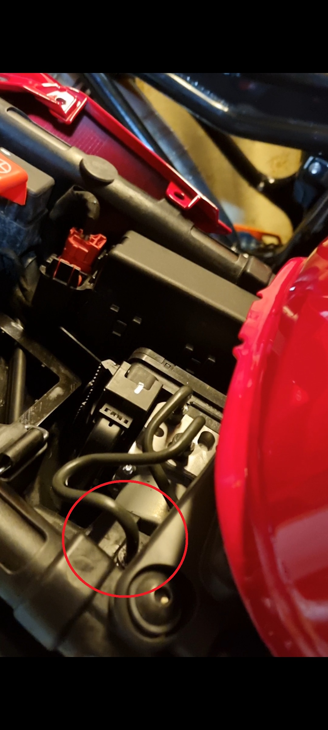 Wenn man den Bremshebel langsam bewegt kommen wenig Luftblasen; wenn man den Fußbremshebel hingegen schnell nach unten drückt, hört man ein minimales Zischgeräusch aus dem Verteilerstück im Heck, das dann zum ABS Modulator geht (siehe Bild).