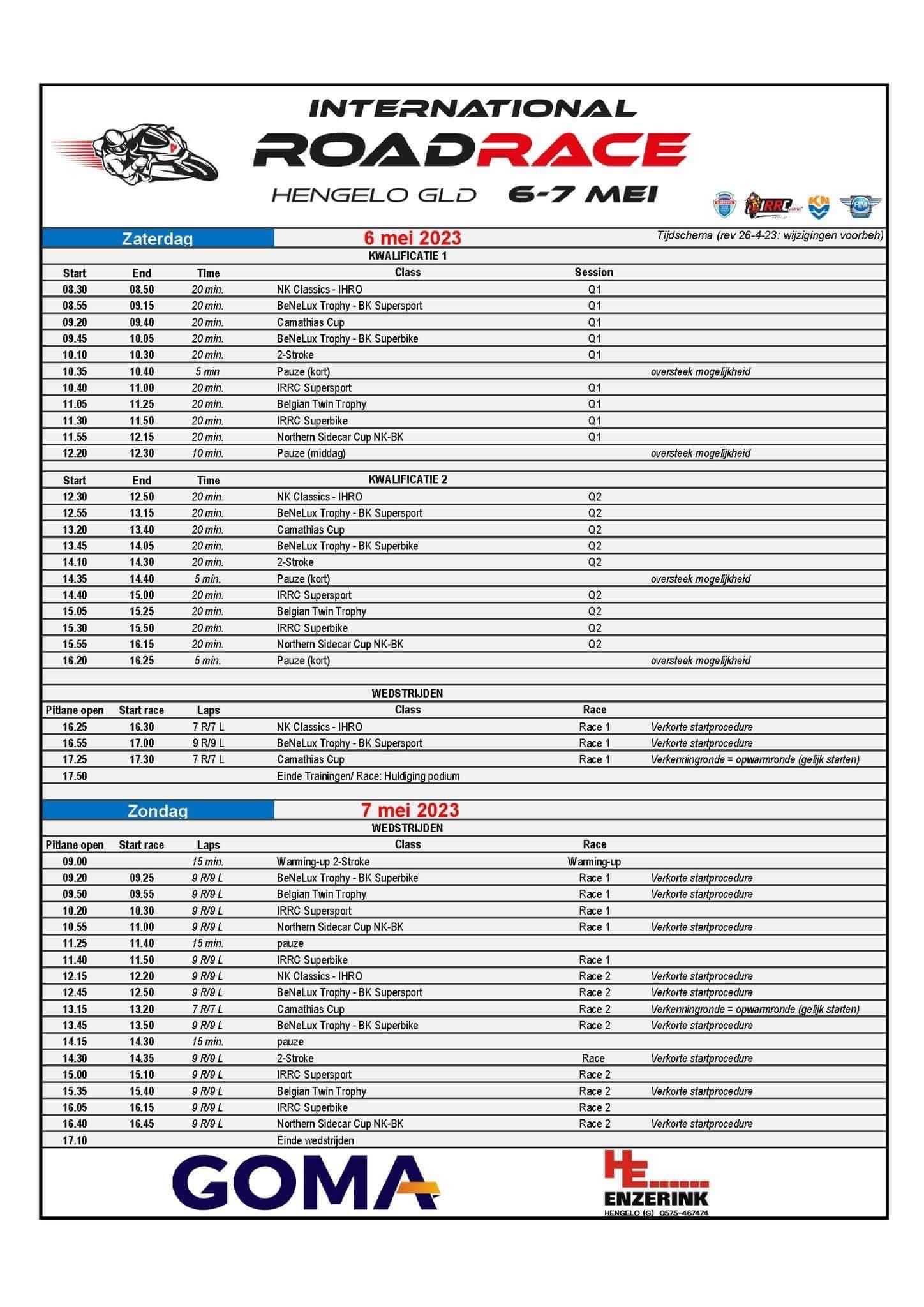Ich und noch ein paar würden gerne spontan am Samstag in Hengelo zugucken kommen, gibt es iwo auch Auskunft darüber wann mit den jeweiligen Rennen gestartet wird ?