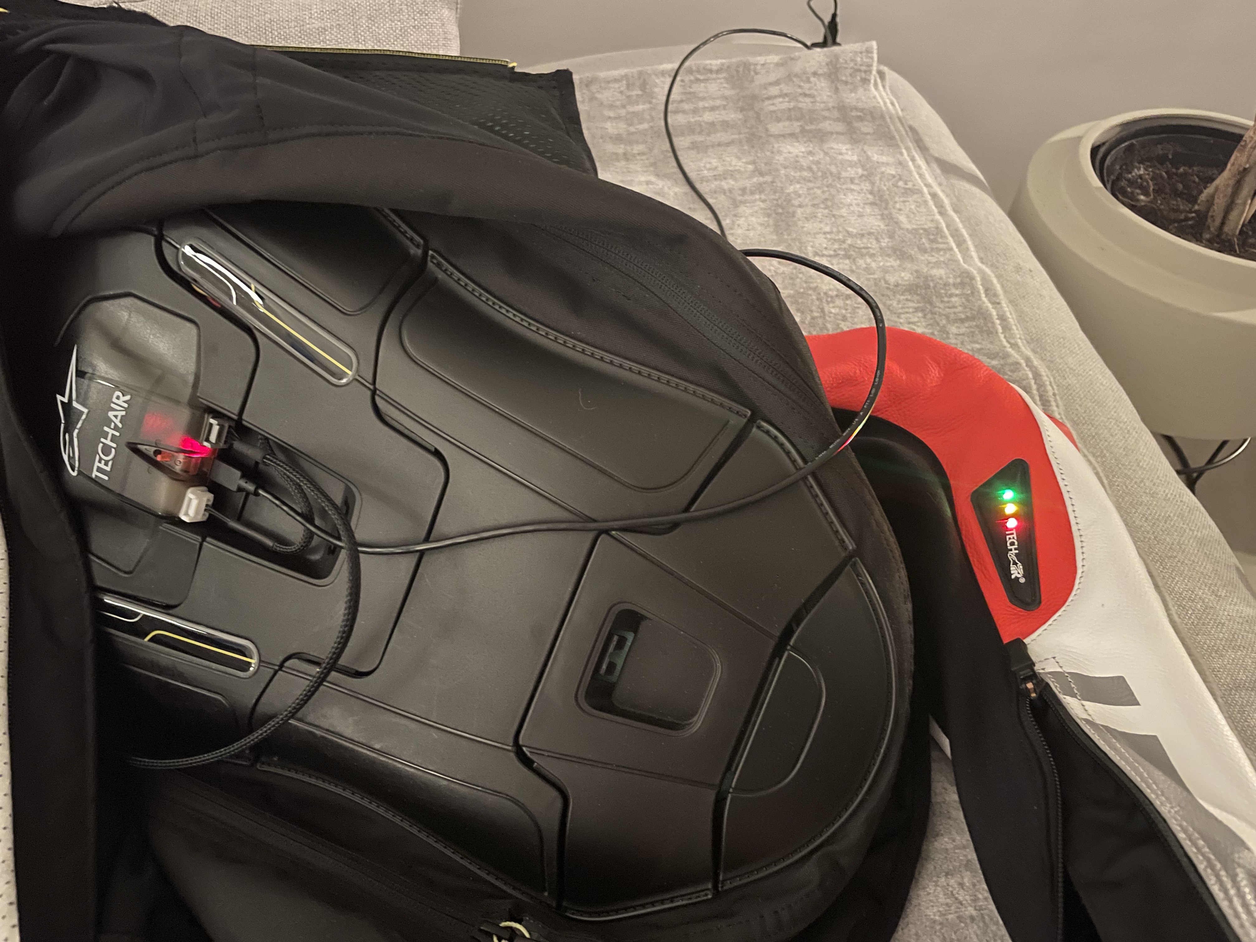 Ziehe ich das Ladekabel ab, bleiben die rote led an der Weste und am Arm noch für 1-2 Sekunden an…