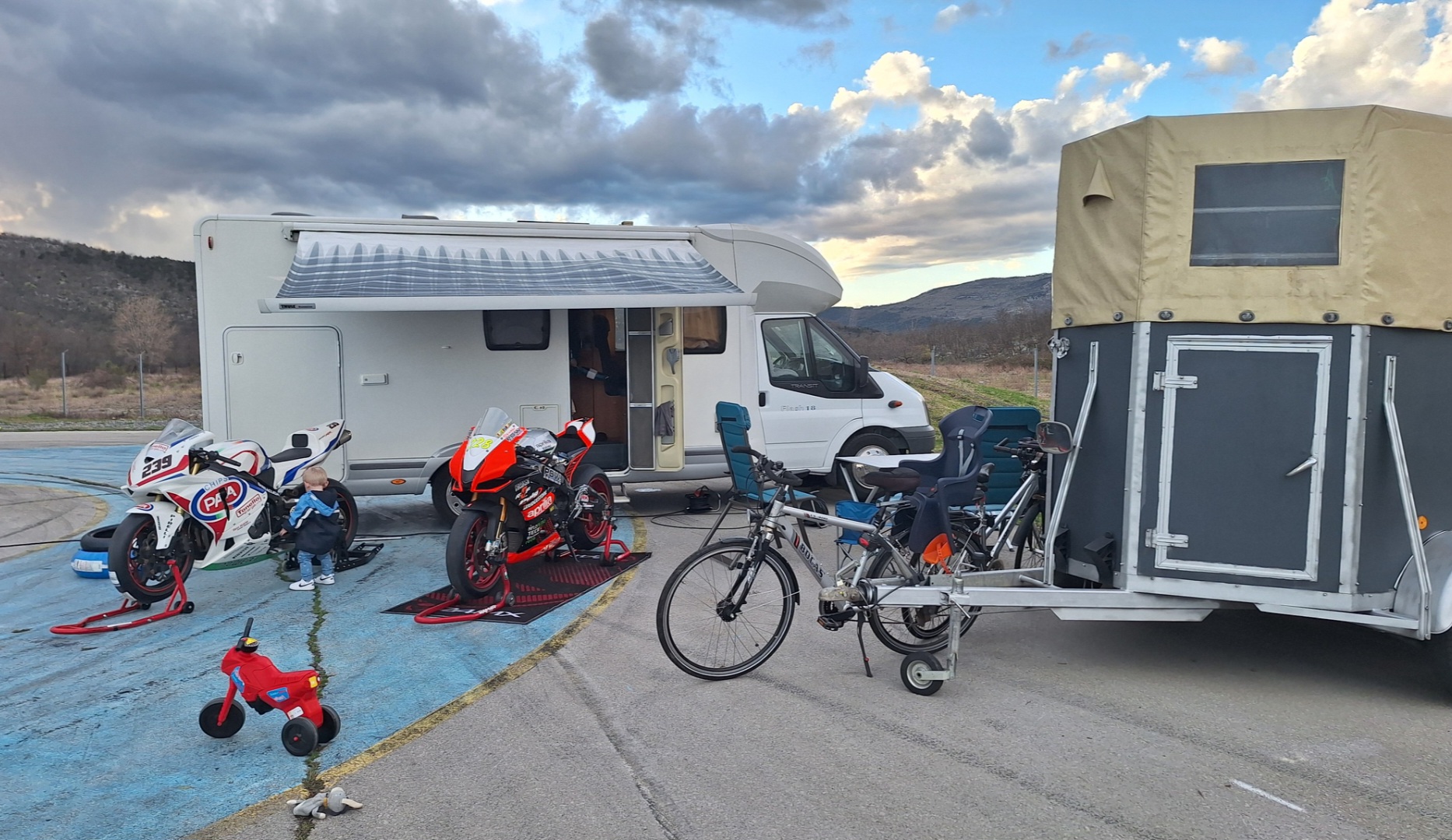 Wenn man den Sport mit der ganzen Familie aufziehen will, dann braucht man Events mit viel Fahrzeit, wo man auch mal nen Turn auslassen kann um das Kind ins Bett zu bringen oder ne anständige Runde mit dem Hund zu gehen. Auch so Sachen wie die Grösse des Fahrerlagers oder wie gut man Zuschauen kann, sind dann nicht mehr sekundär. Da hatte mich Rijeka wirklich überzeugt. Einfach 100 Meter laufen, günstigen Latte Macchiato im ,,The Hill" trinken, während Junior T1 überschauen kann.
