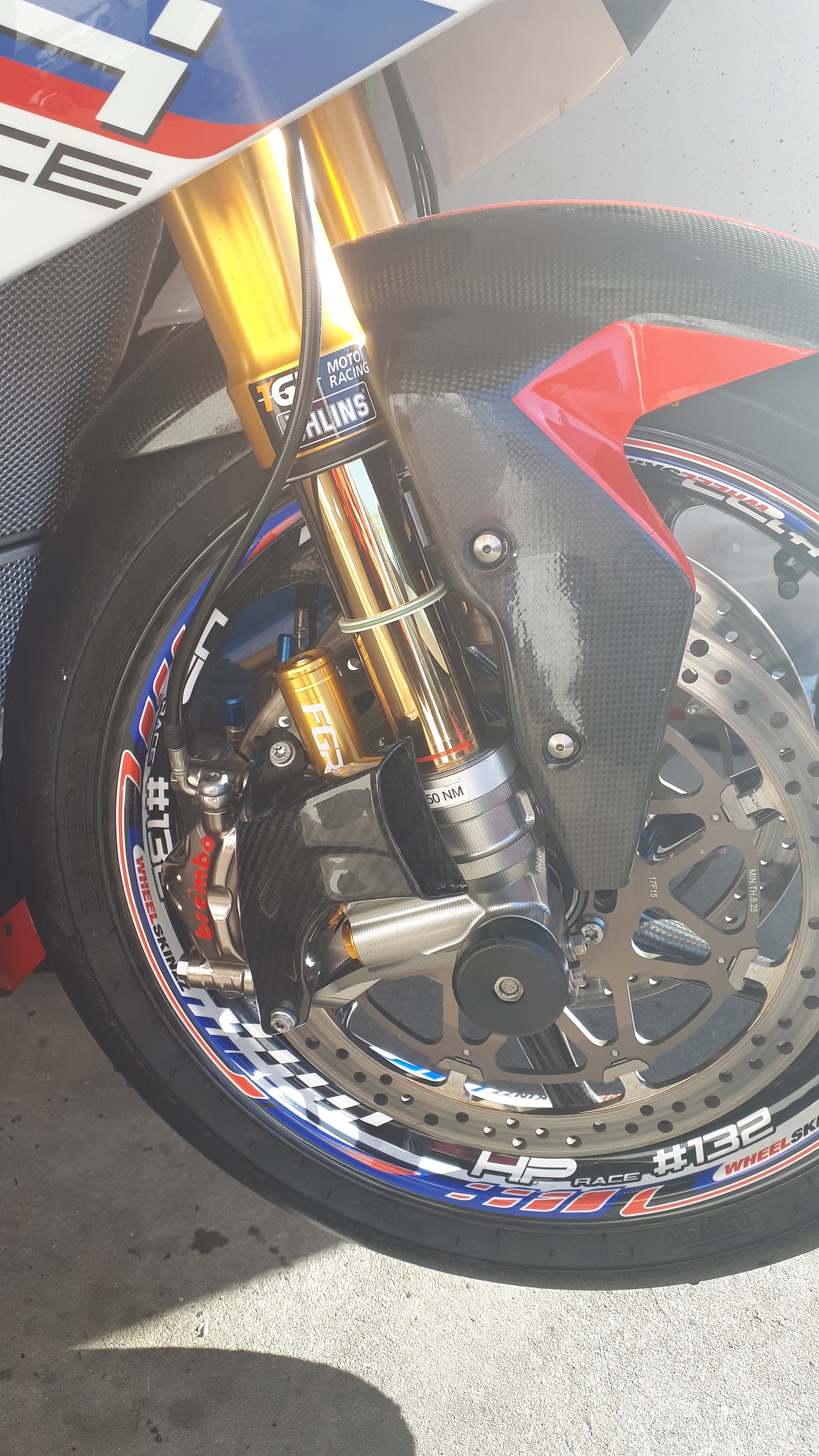 Der einzige Unterschied, der mir auf den ersten Blick aufgefallen ist, ist dass die Kühlung bei Fullsix direkt auf dem Carbon von der Bremzange geklemmt wird statt wie bei Motocoach mit Blechhaltern. Das gefällt mir eigentlich nicht so gut. Mein Bedenken ist, dass eer Klarlack und der Kunststoff (auch wenn es mit Kohlefaser verstärkt ist) dazu neigt sich unter Belastung zu setzen und die Bremszangenschrauben verlieren dann Vorspannkraft.