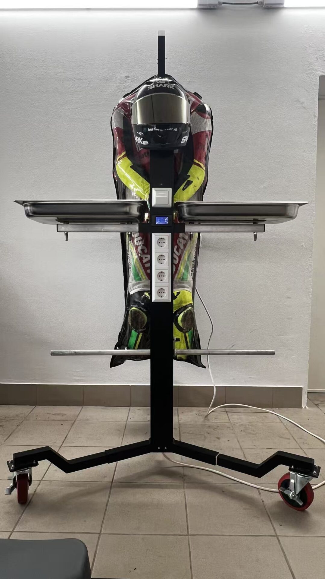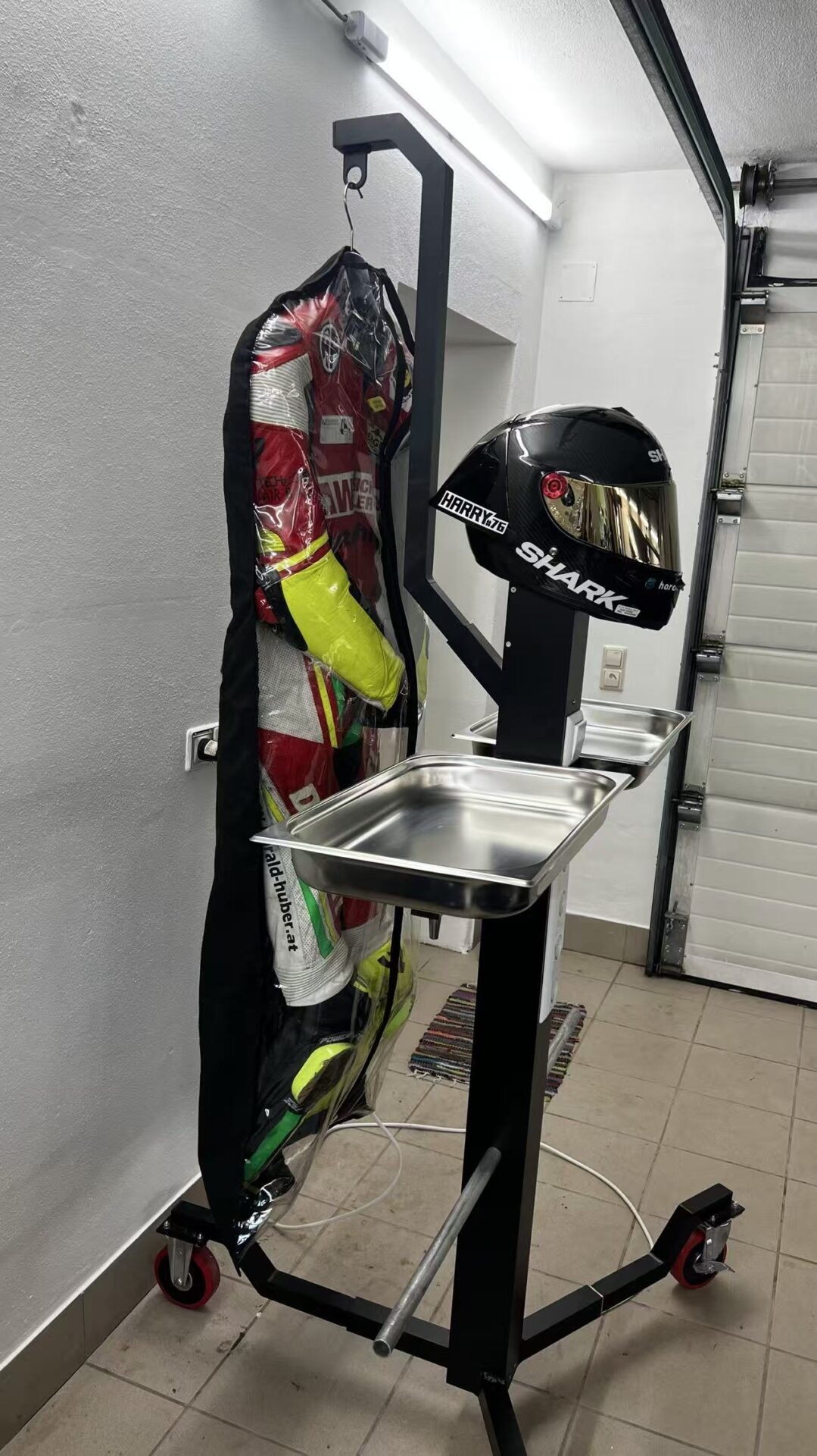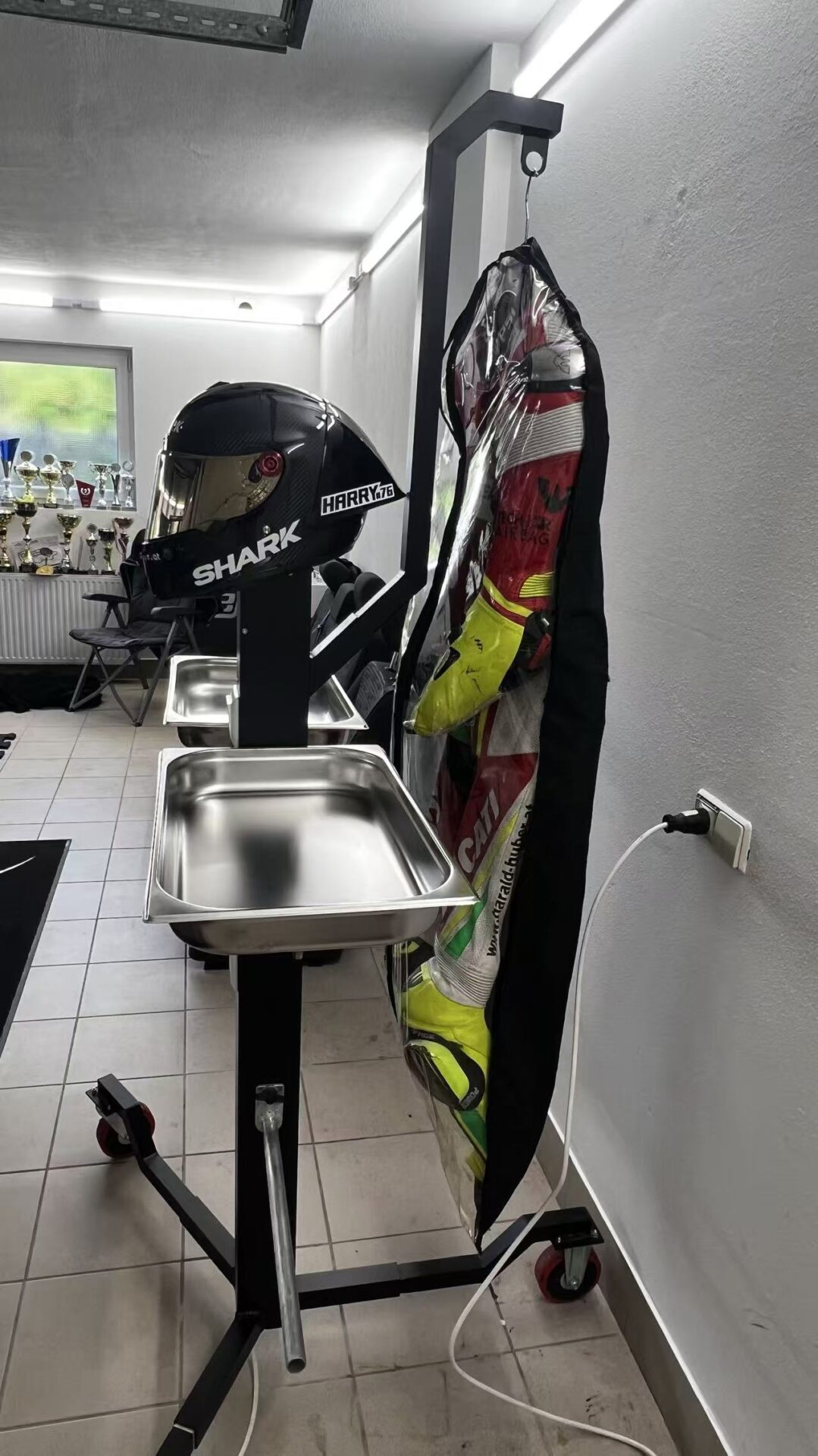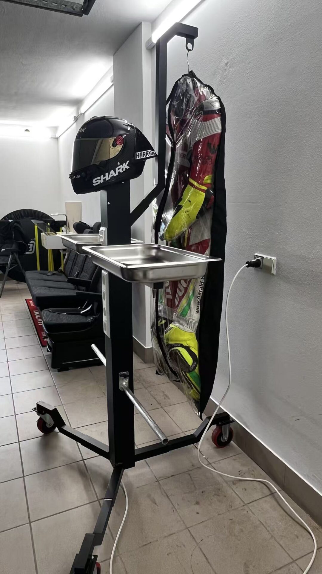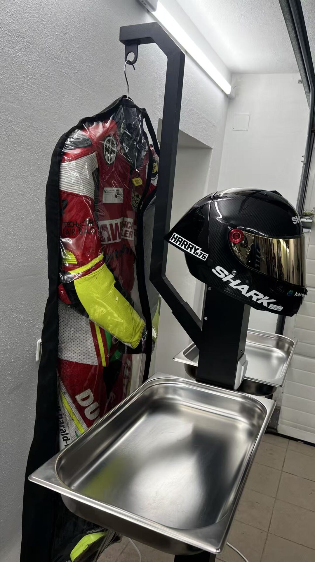 Dieser Garderobenständer ist die perfekte Lösung für den Einsatz im Motorsport, egal ob in der Box, im Paddock oder in der heimischen Garage. Er wurde robust und durchdacht in Eigenbau gefertigt und ist dadurch stabiler und praktischer als das handelsübliche Original.