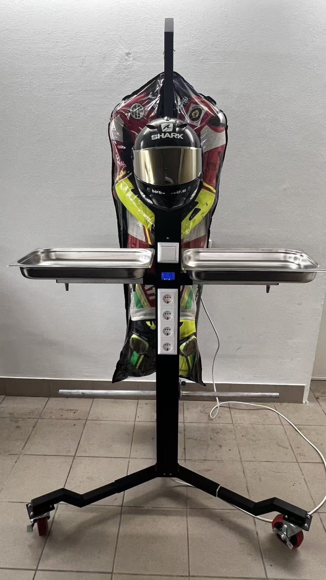 Stromversorgung: Mehrfachsteckdosen integriert, ideal zum Laden von Helmventilator, Batterien oder anderen Geräten.