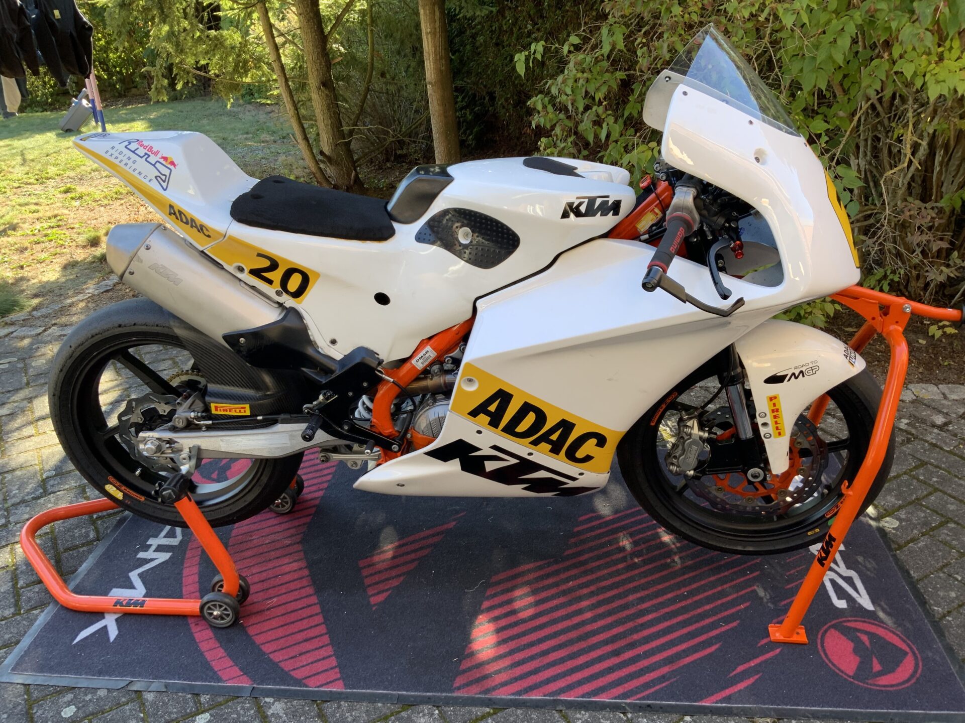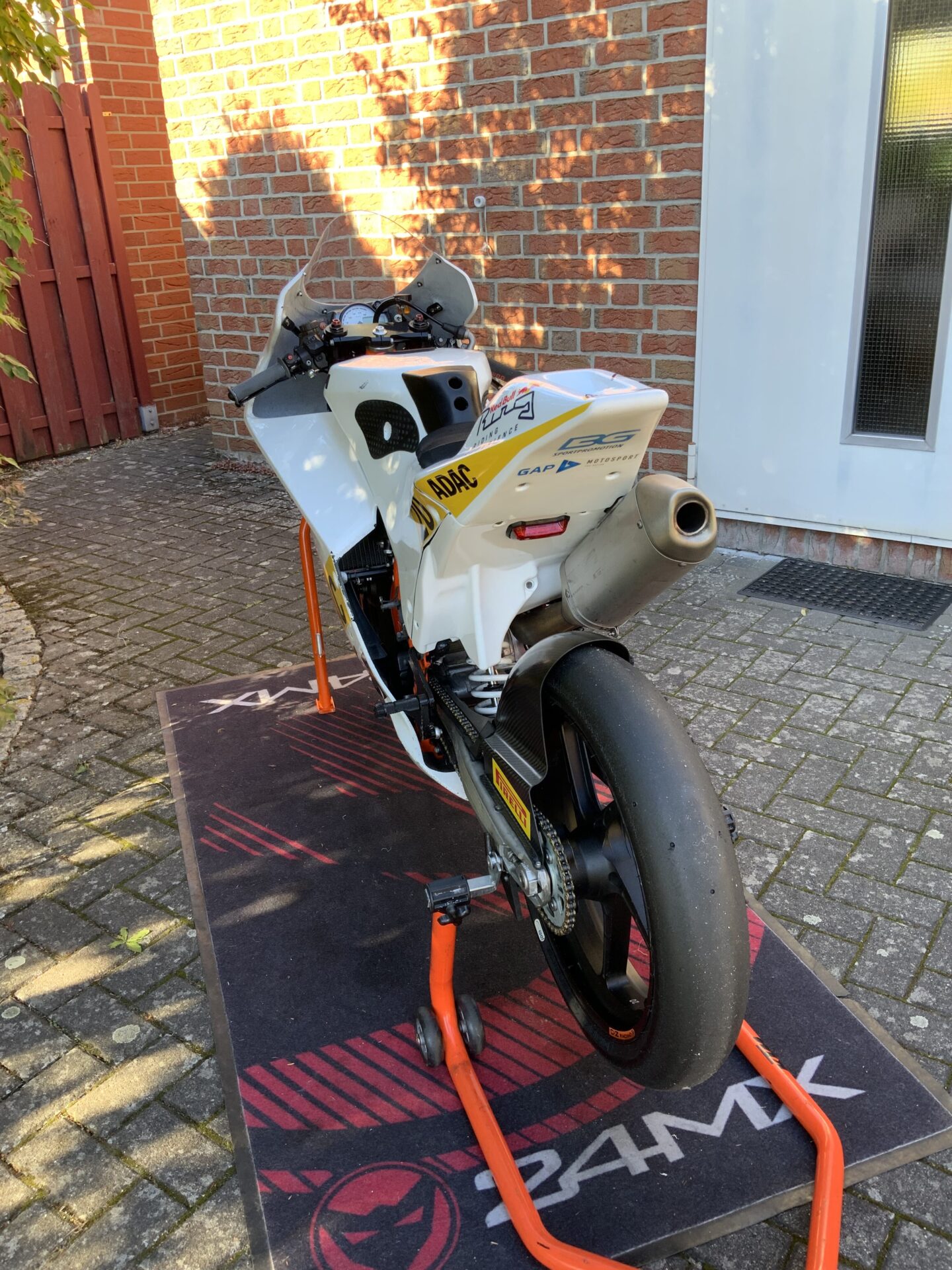 RC4R, Modell 2023, 4. Platz im ADAC Junior Cup 2025, 68 Betriebsstunden (Motor wurde bei 30 Stunden überholt). Das Fahrwerk wurde in diesem Jahr überholt. Optional noch großes Ersatzteilpaket erhältlich (Felgensatz mit Regenreifen, Verkleidung, Sturzteile, Ständer, etc.). Viele noch gute gebrauchte Pirelli-Reifen dabei.