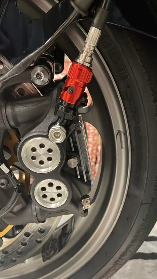 - Vordere Bremsschläuche an beiden Bremssätteln mit Schnellspannern