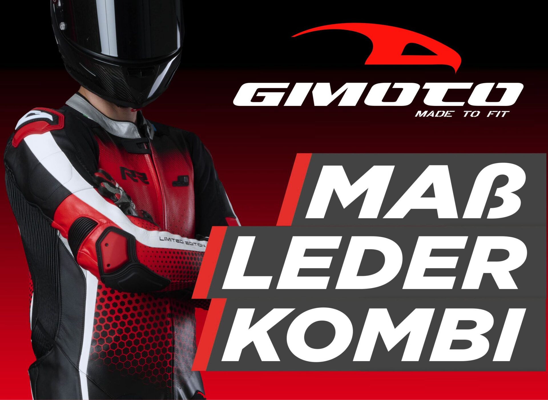 Bei uns bekommst Du deine 100% in Italien gefertigte Gimoto-Maßlederkombi und das mit klasse Preis / Leitung.