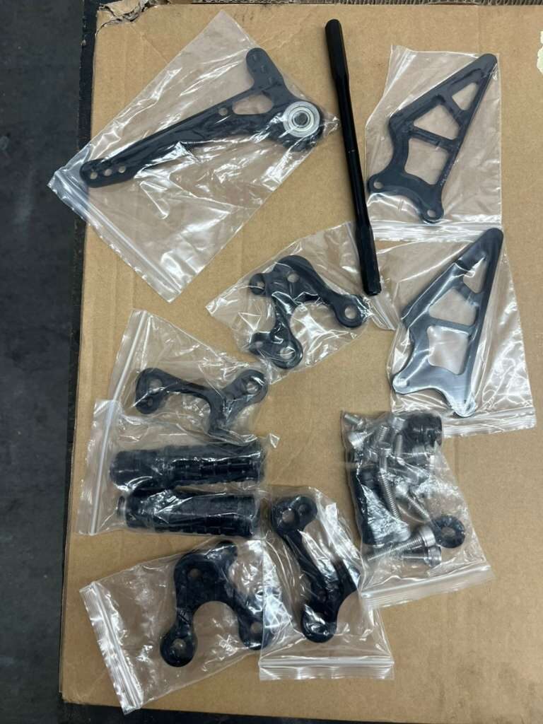 Fußrasten und Fußstütze einstellbar, extrem leicht, hohe Festigkeit und Verschleißfestigkeit.