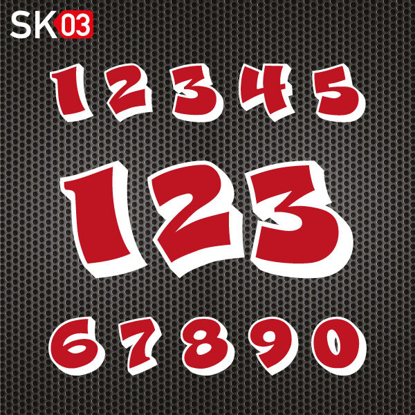 Einfach zu genieren, dank großer Vielfalt. Individuelle Motorrad Startnummern in Wunschfarbe und Wunschhöhe. Aufkleber im zweifarbigen Folienschnitt für Motocross Rennstrecke, Enduro Bike, Pitbike, MTB, Motorrad Rennen, MX Racing, Auto, Roller, BMX, Superbike Track, Supermoto Race, Quad und Scooter.
